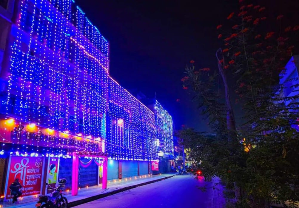 नेपालगन्जको मुख्य बजार क्षेत्र ताहाचल, बीपी चौक, त्रिवेणी चोक र गणेशपुरतर्फ रातभर चहलपहल बढेको छ। झिलिमिली बत्तीहरूको दृश्य हेर्न आउनेहरू बीच फोटो खिच्ने र भिडियो बनाउन व्यस्तता देखिन्छ।