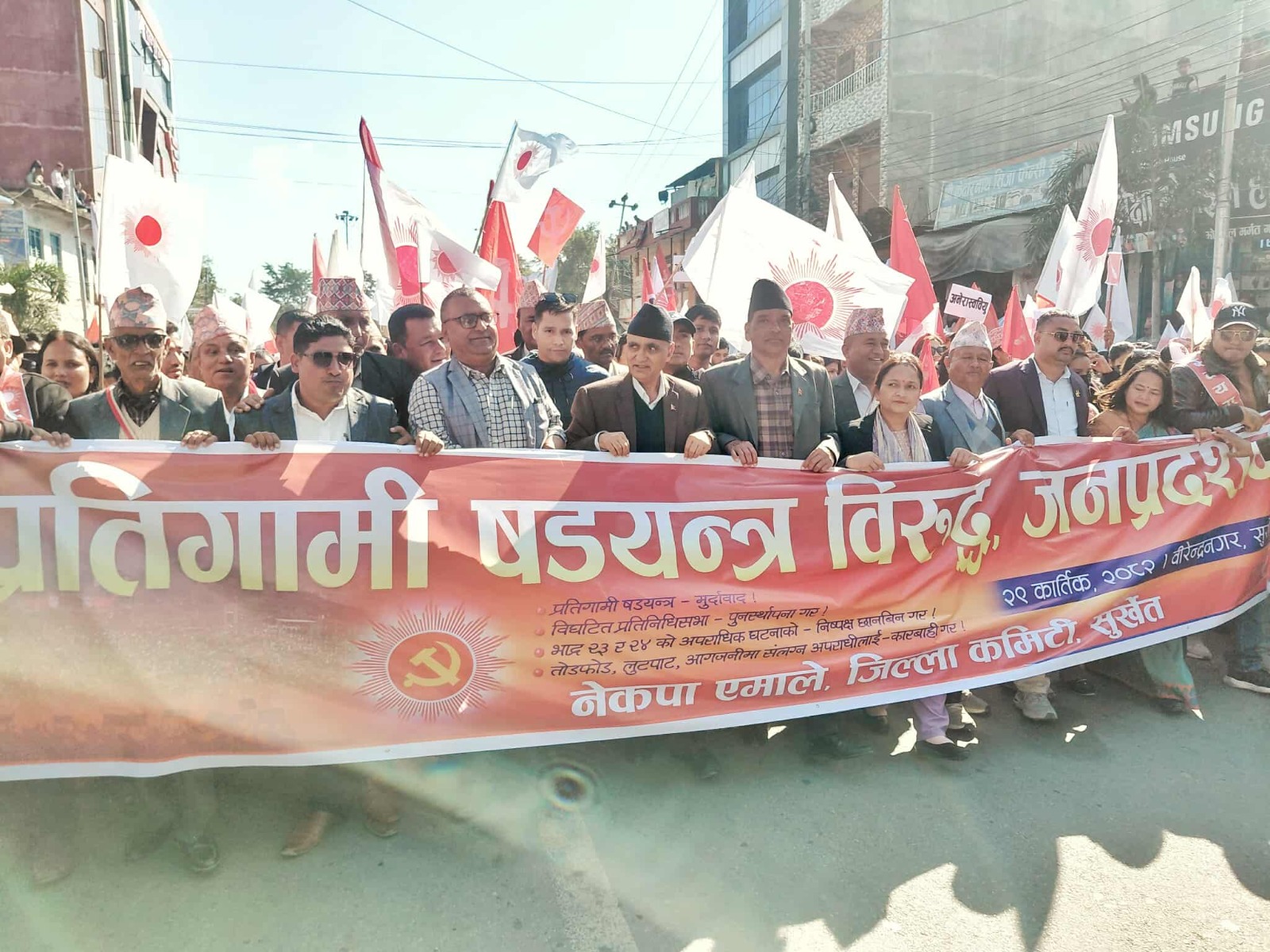 ३०, कार्तिक २०८२ सुर्खेत ।सुर्खेतमा नेकपा (एमाले)ले प्रतिगामी षड्यन्त्रका विरुद्ध ठूलाे जनप्रदर्शन...