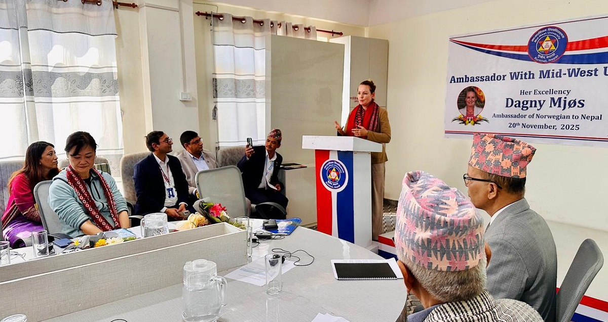 ६, मंसिर २०८२ सुर्खेत।नेपालका लागि नर्वेका राजदूत डाग्नी म्योसले उच्च शिक्षा विकासमा नेपाल–नर्वेको...