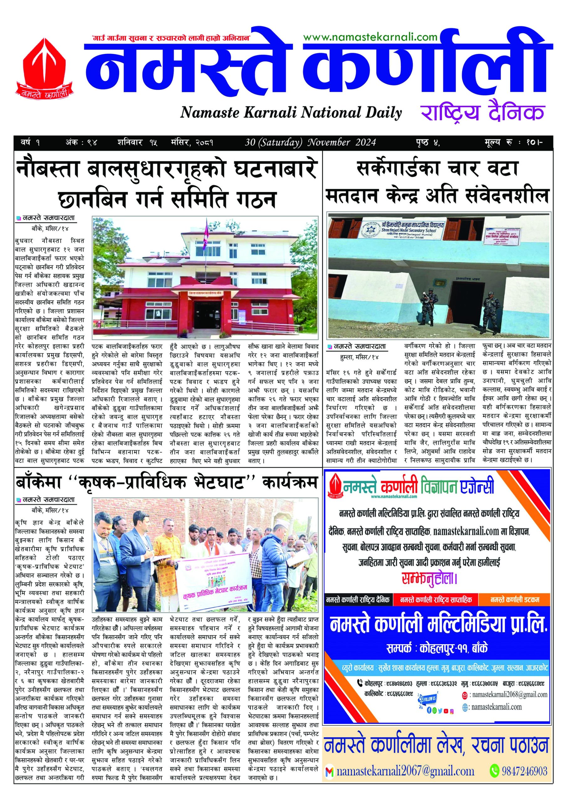 नमस्ते कर्णाली राष्ट्रिय दैनिक २०८१–०८–१९ गते