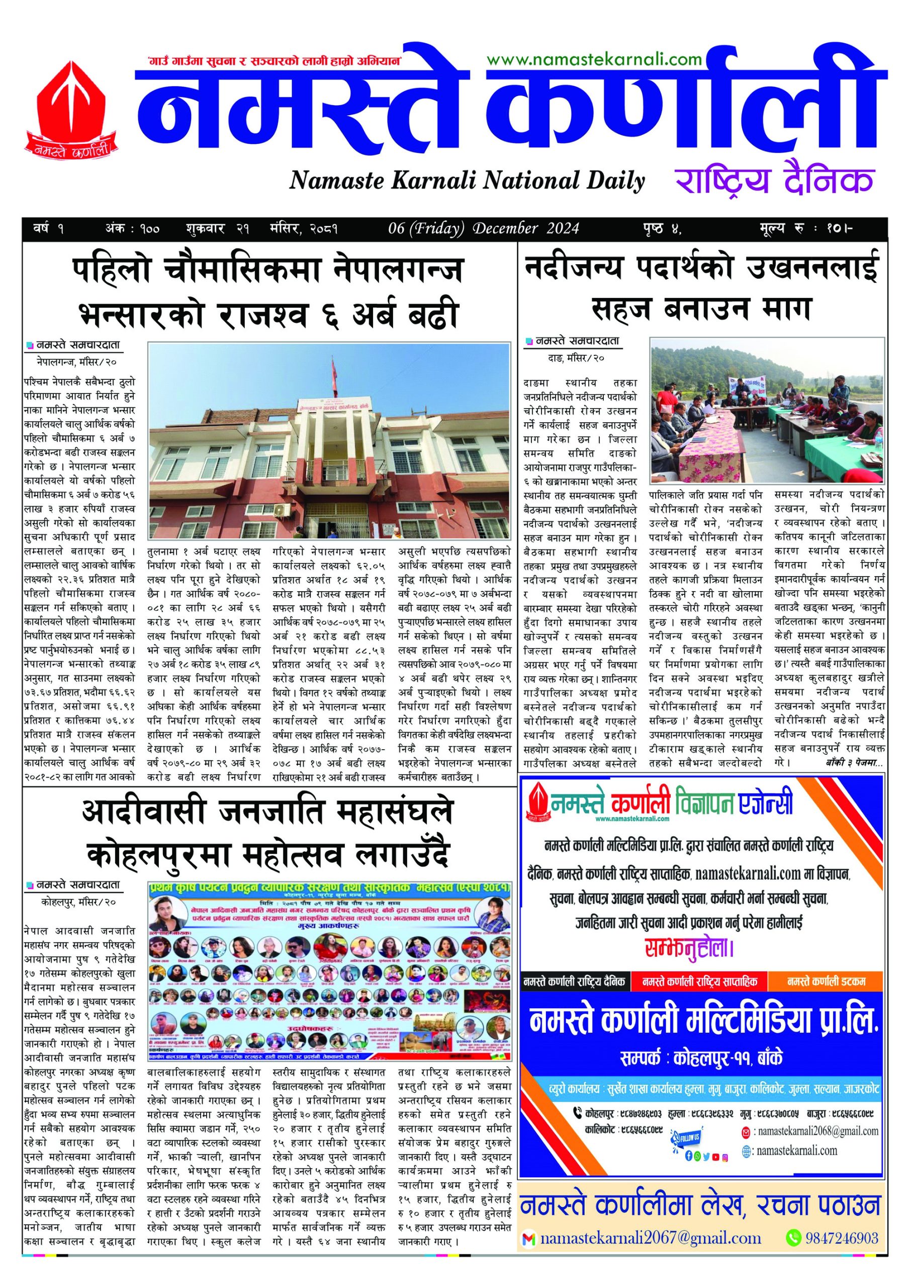नमस्ते कर्णाली राष्ट्रिय दैनिक २०८१–११–०६ गते