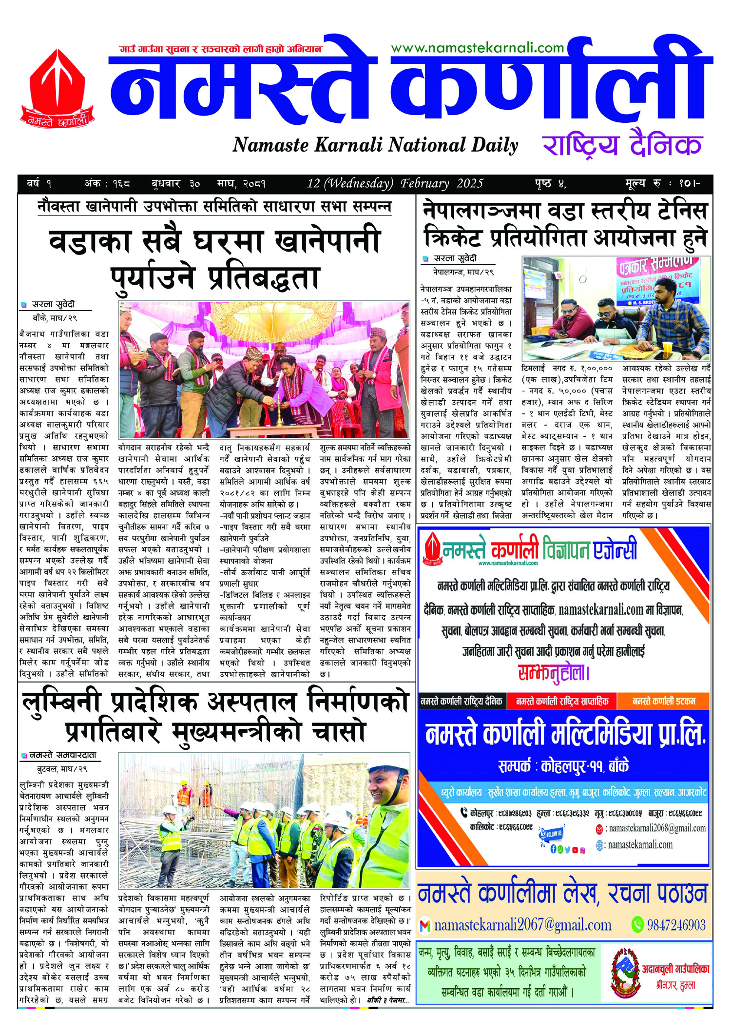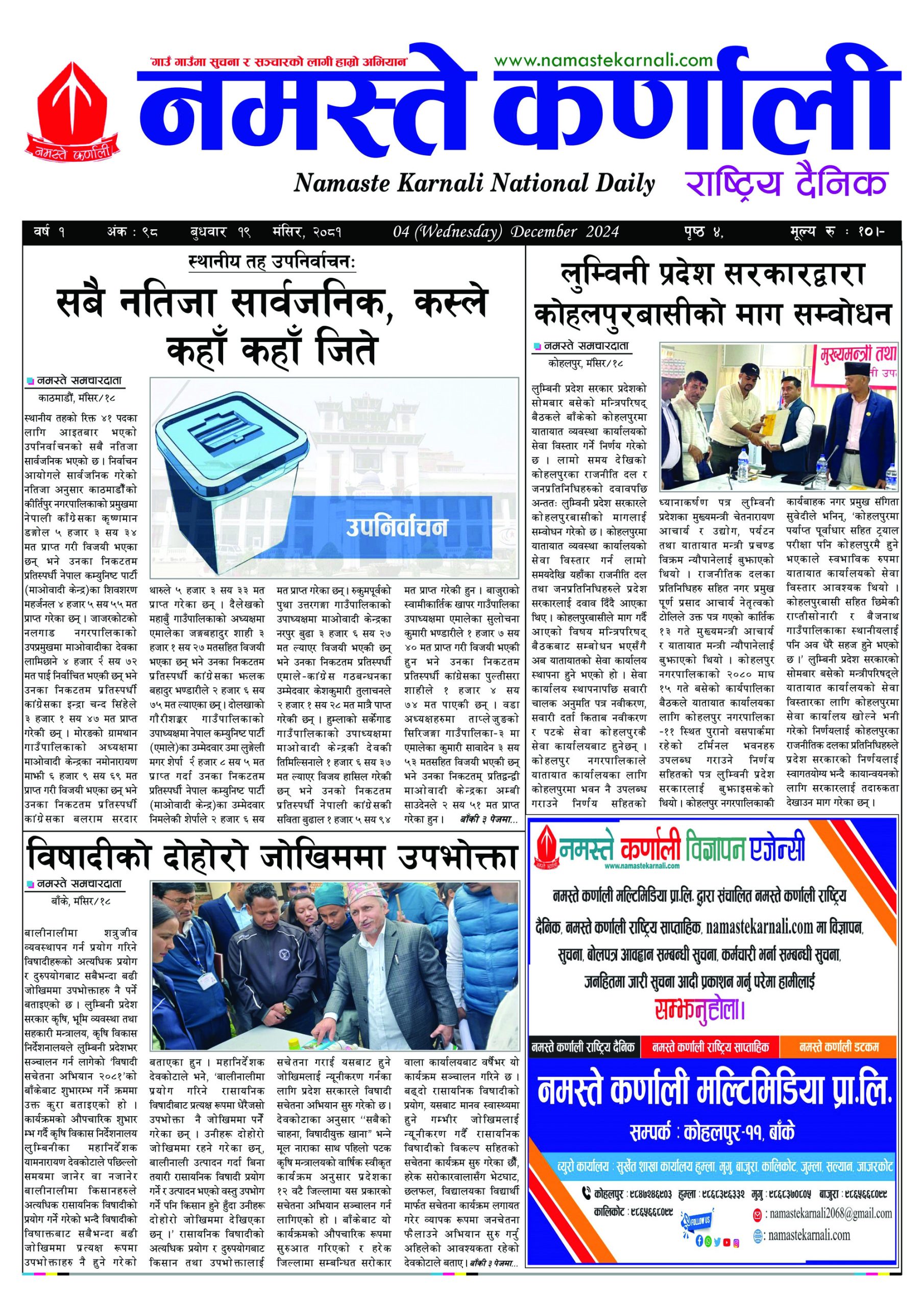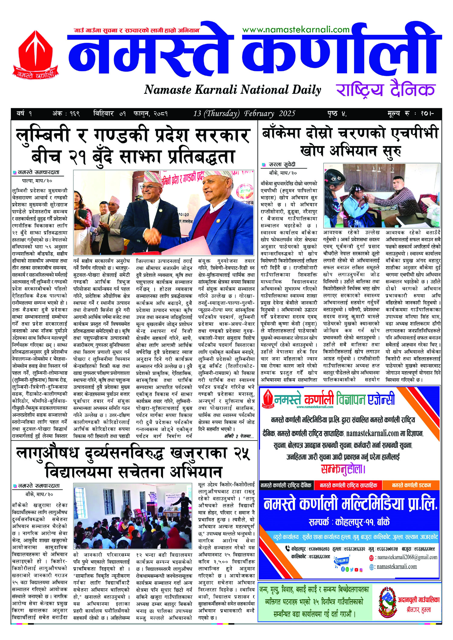 नमस्ते कर्णाली राष्ट्रिय दैनिक २०८१–११–१९ गते