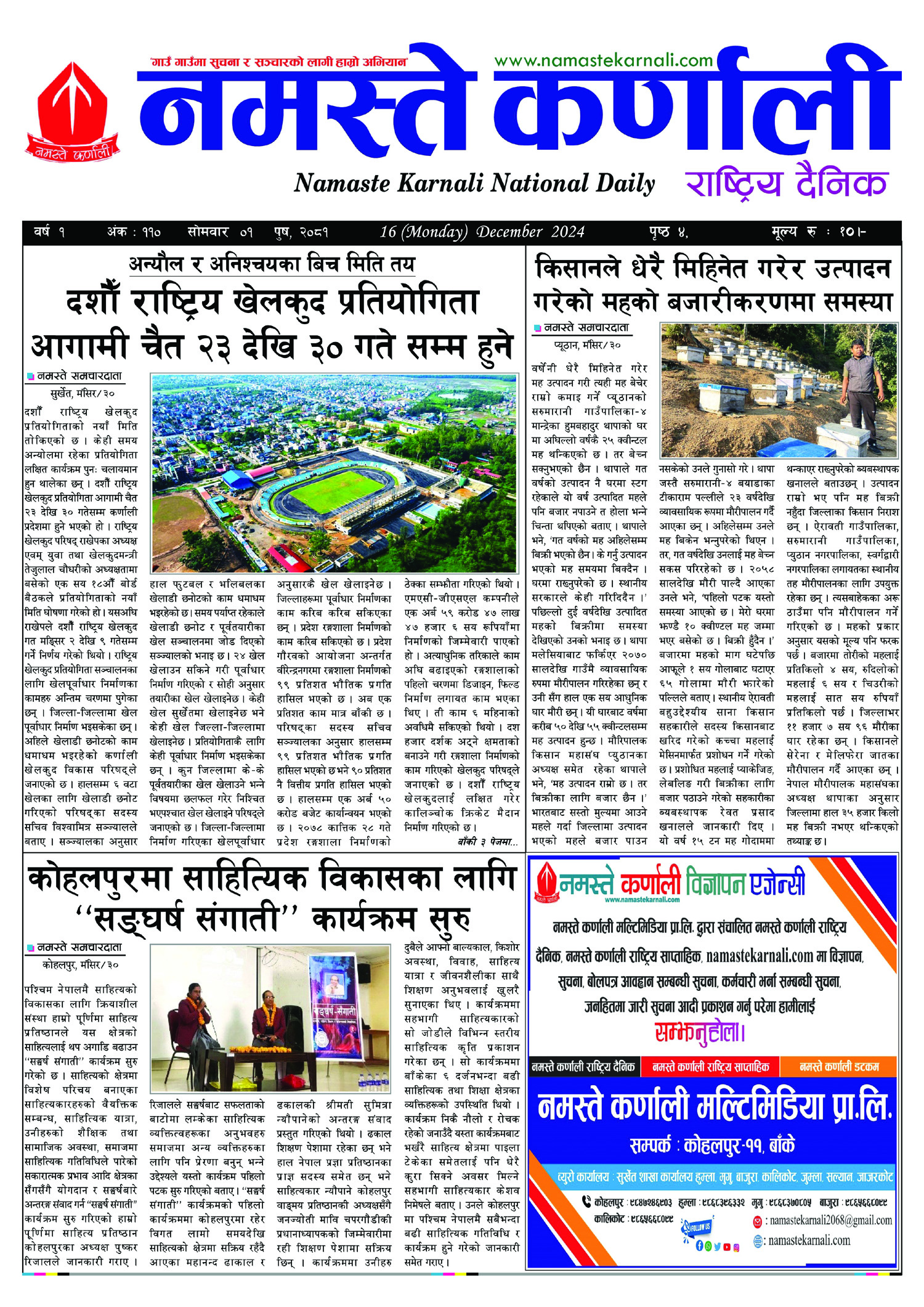 नमस्ते कर्णाली राष्ट्रिय दैनिक २०८१–११–१० गते