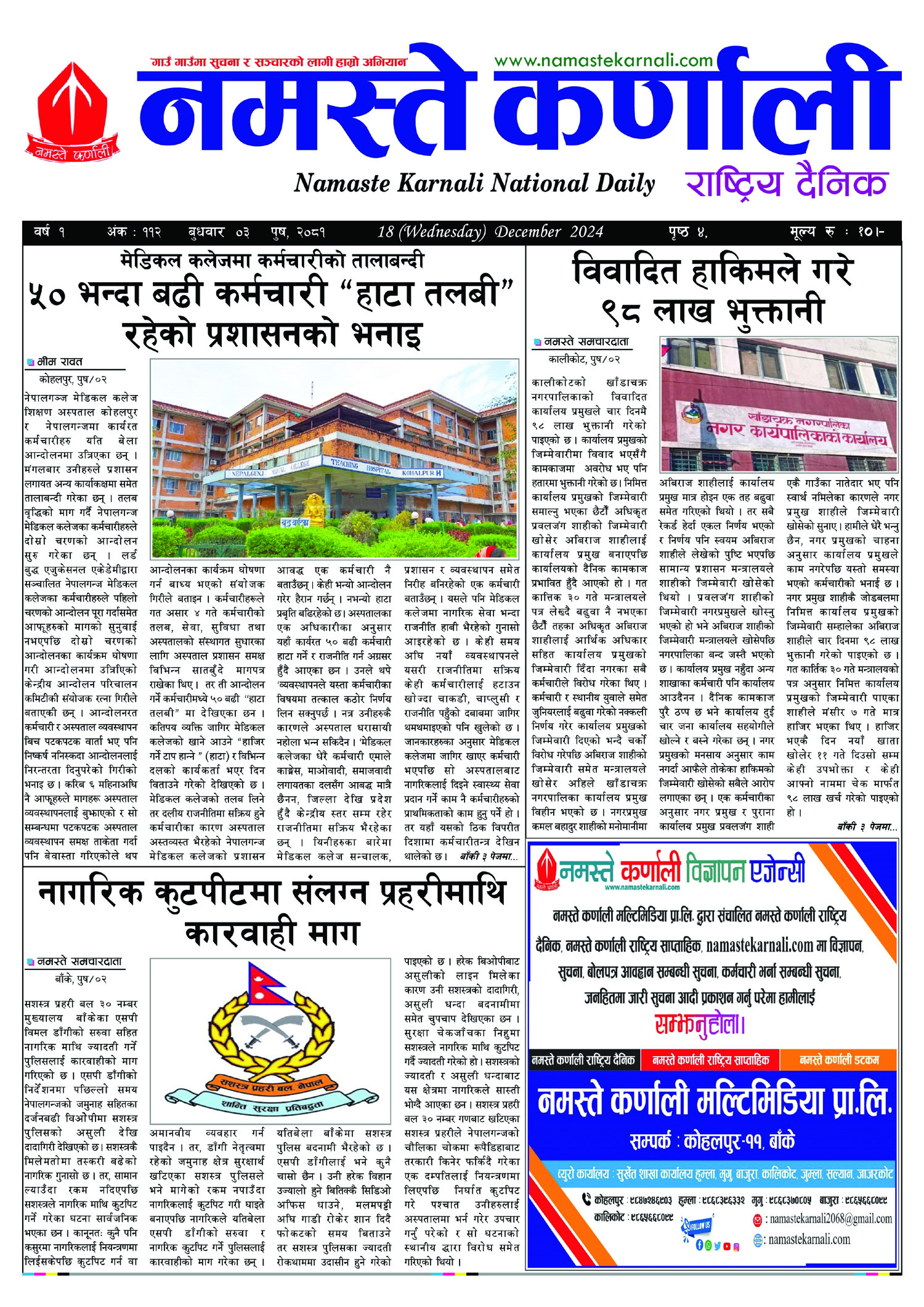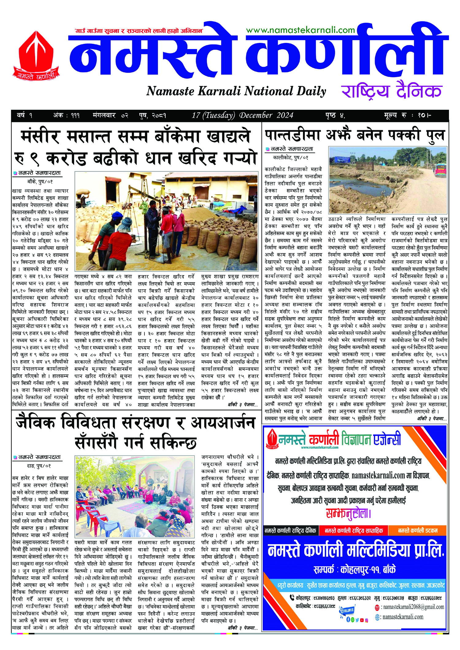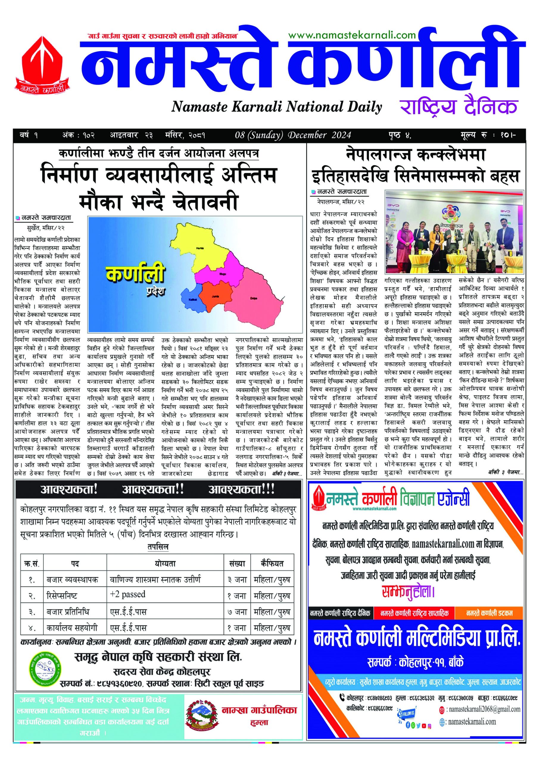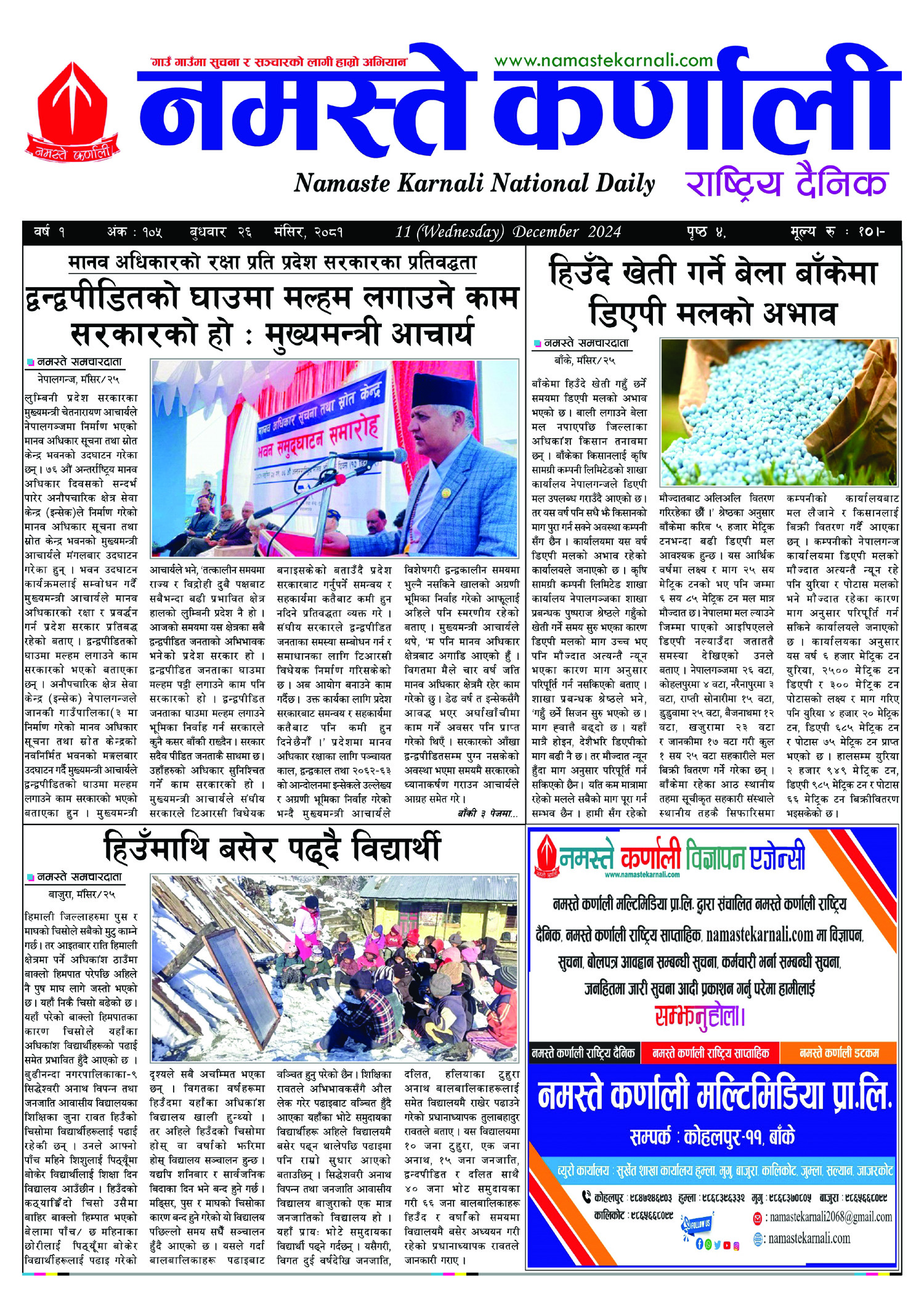 नमस्ते कर्णाली राष्ट्रिय दैनिक २०८१–११–०४ गते