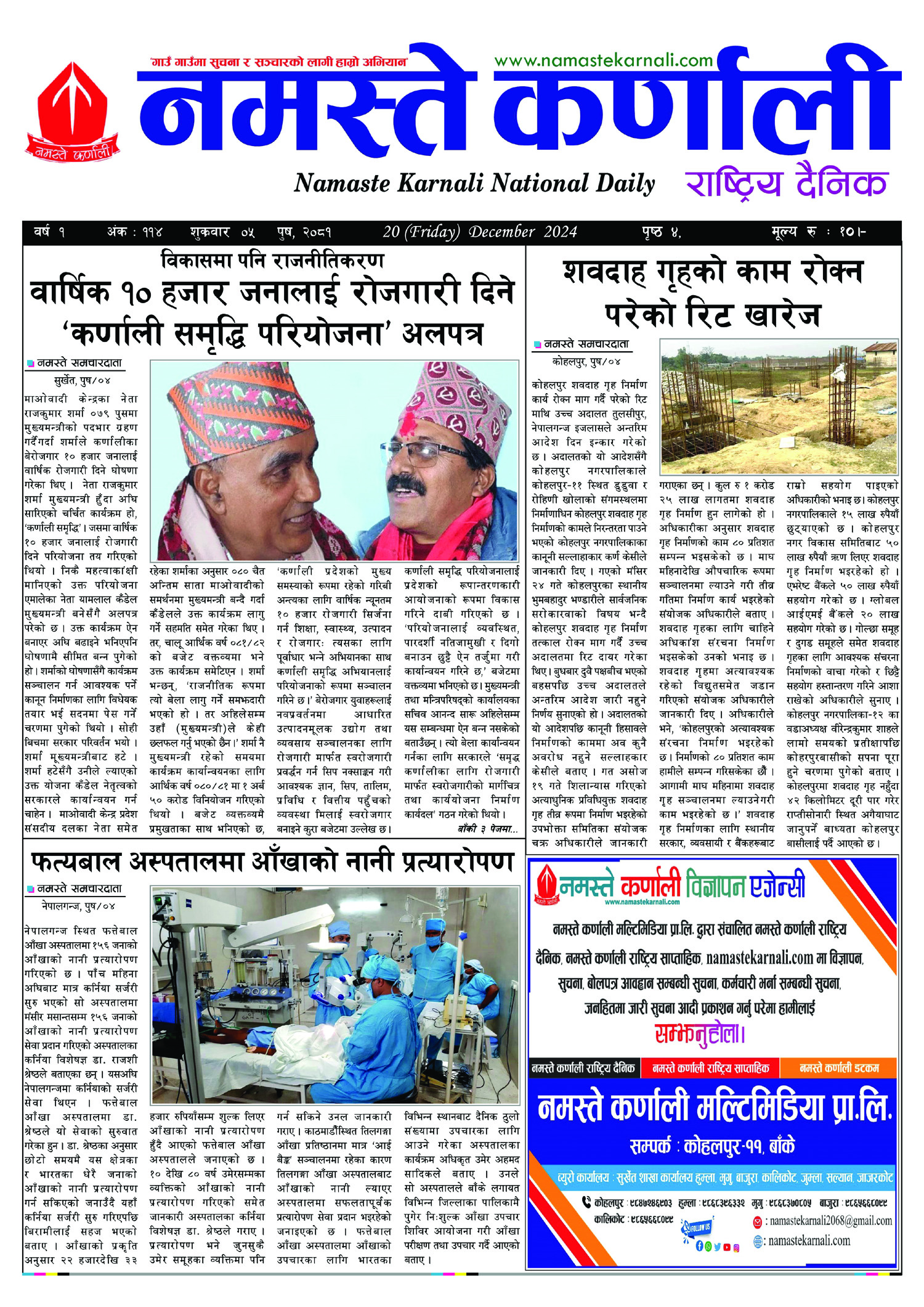 नमस्ते कर्णाली राष्ट्रिय दैनिक २०८१–१०–२० गते
