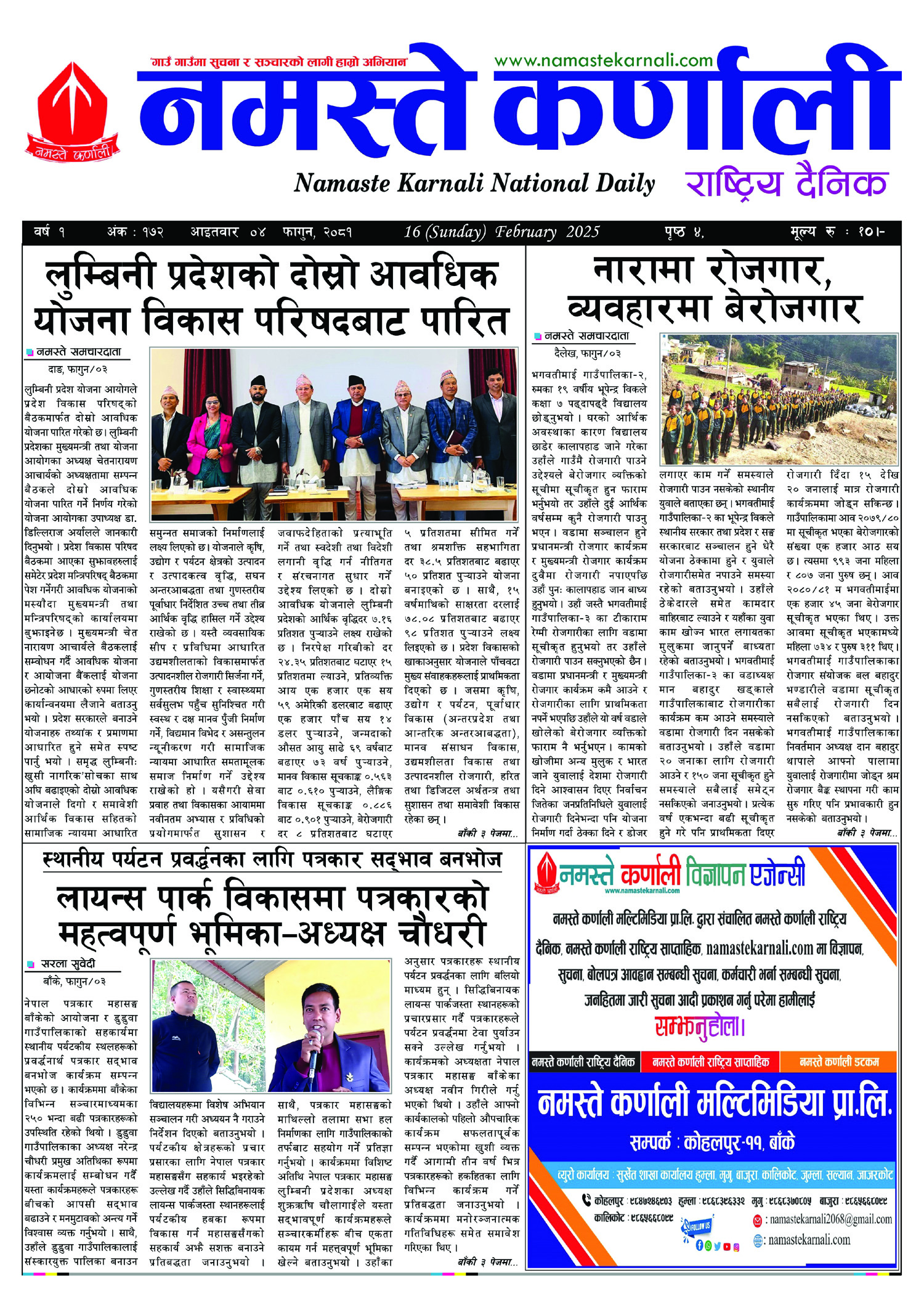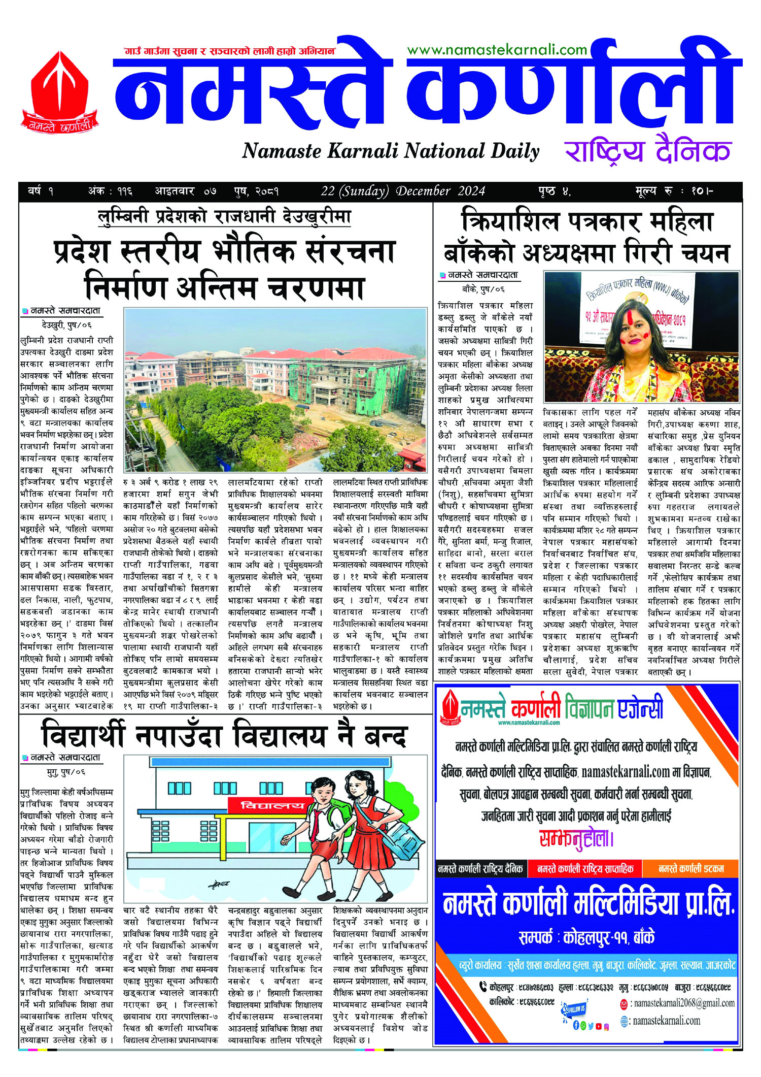 नमस्ते कर्णाली राष्ट्रिय दैनिक २०८१–११–१६ गते