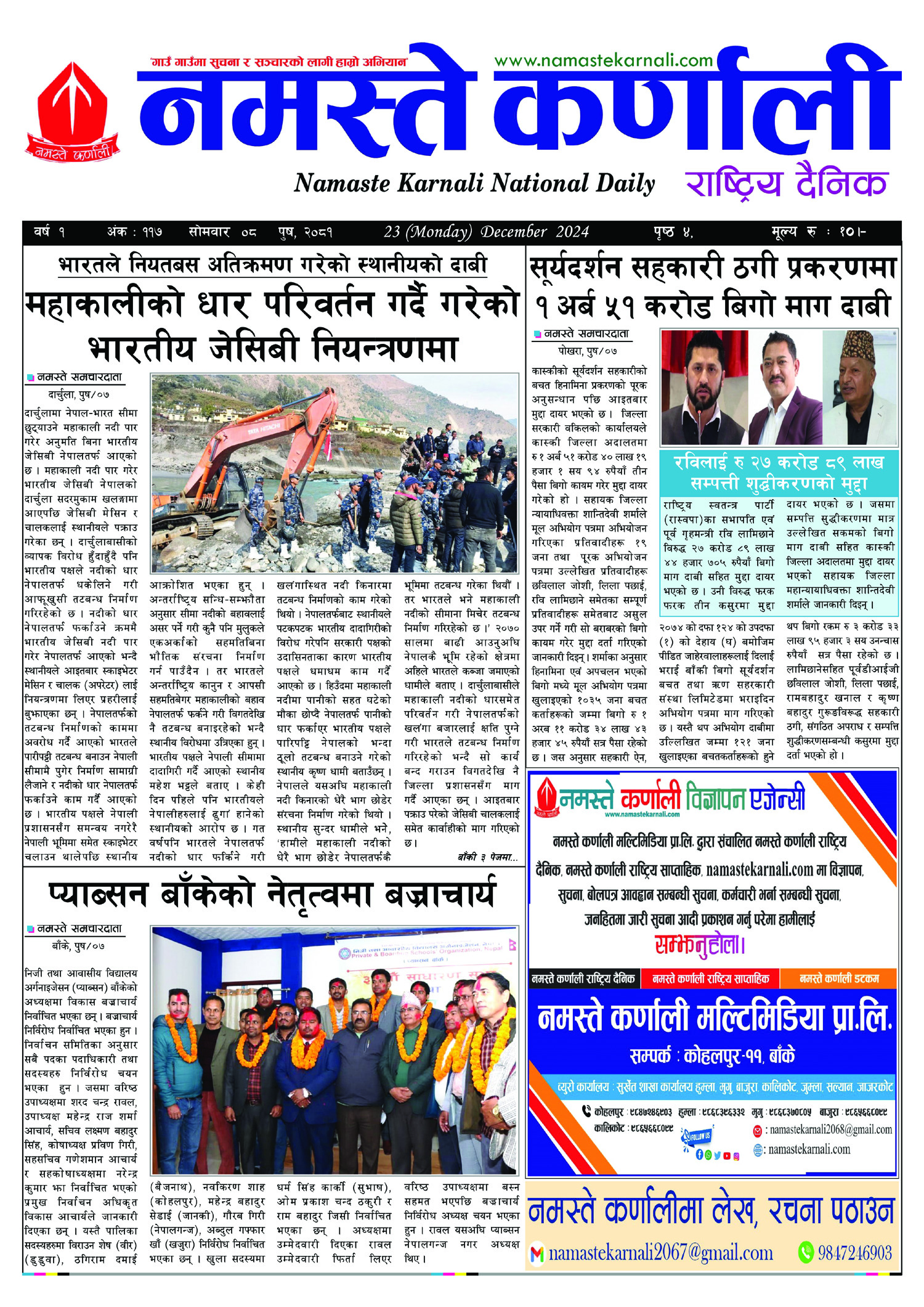 नमस्ते कर्णाली राष्ट्रिय दैनिक २०८१–११–२३ गते