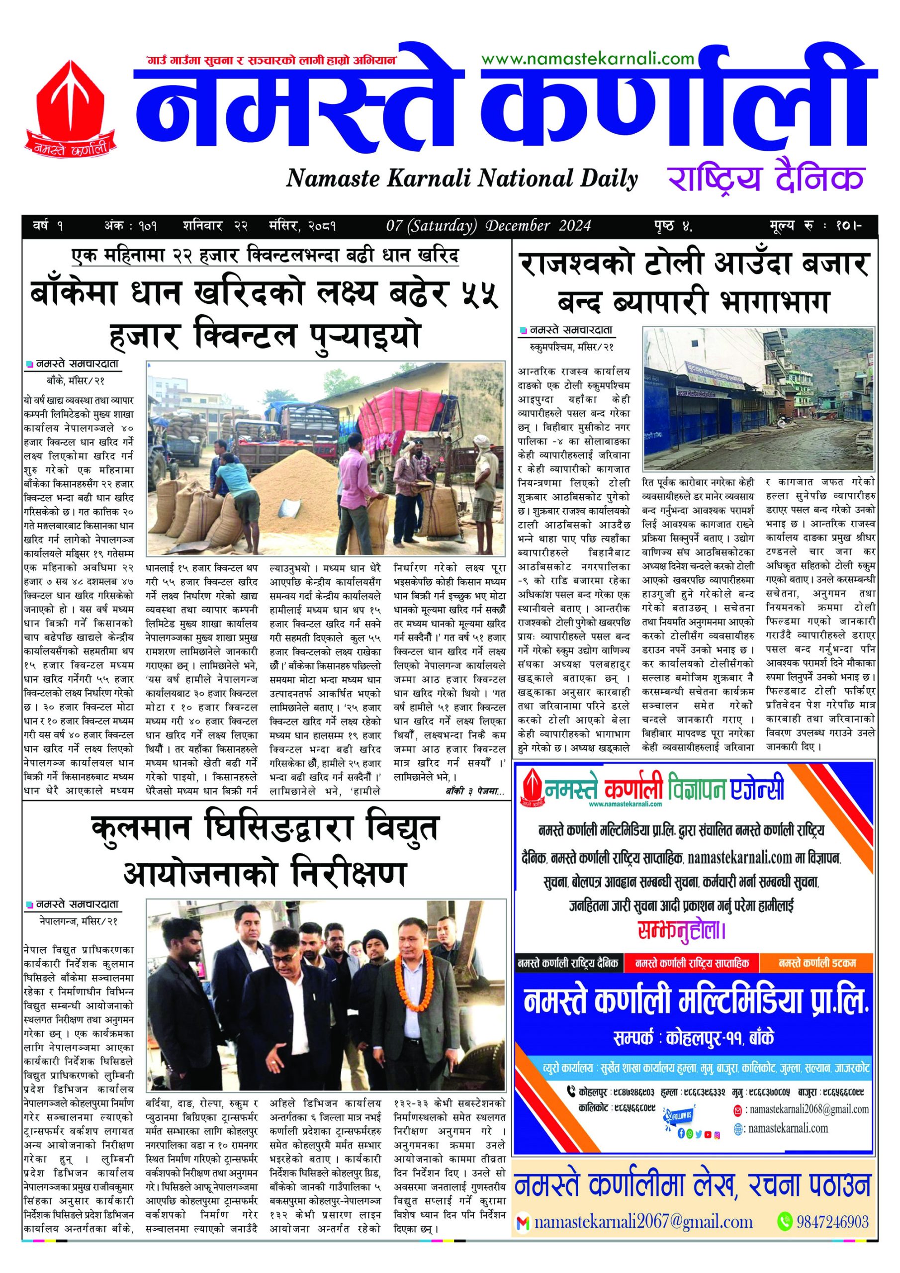 नमस्ते कर्णाली राष्ट्रिय दैनिक २०८१–११–०७ गते