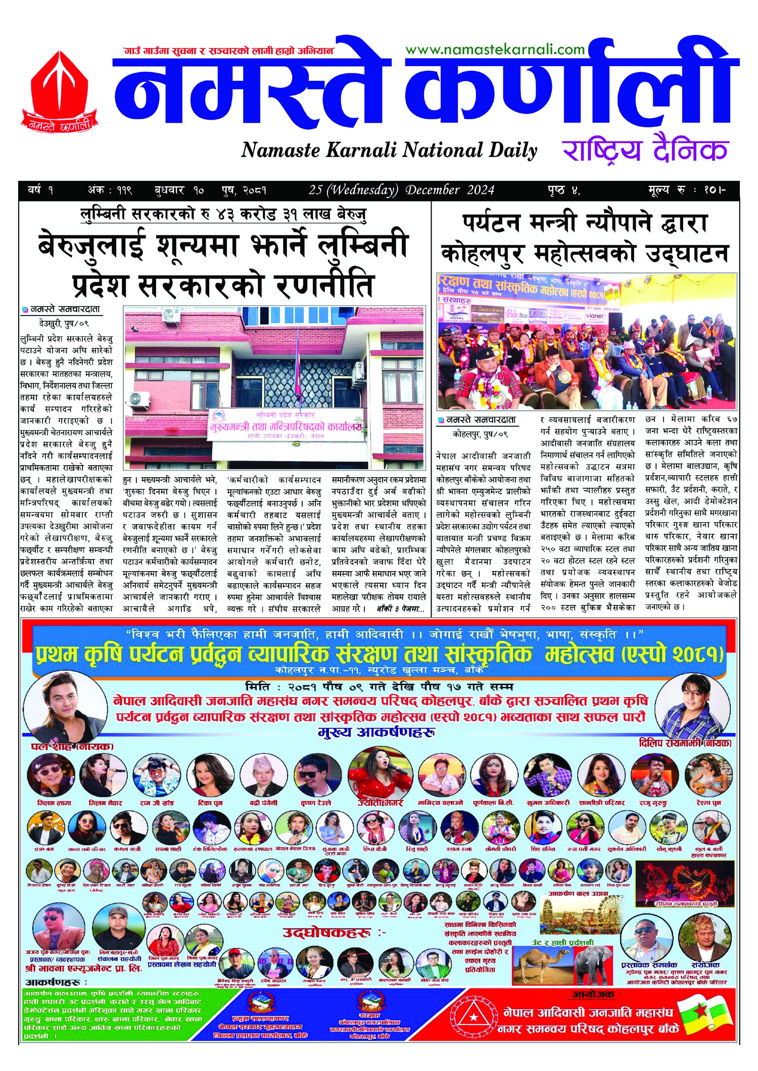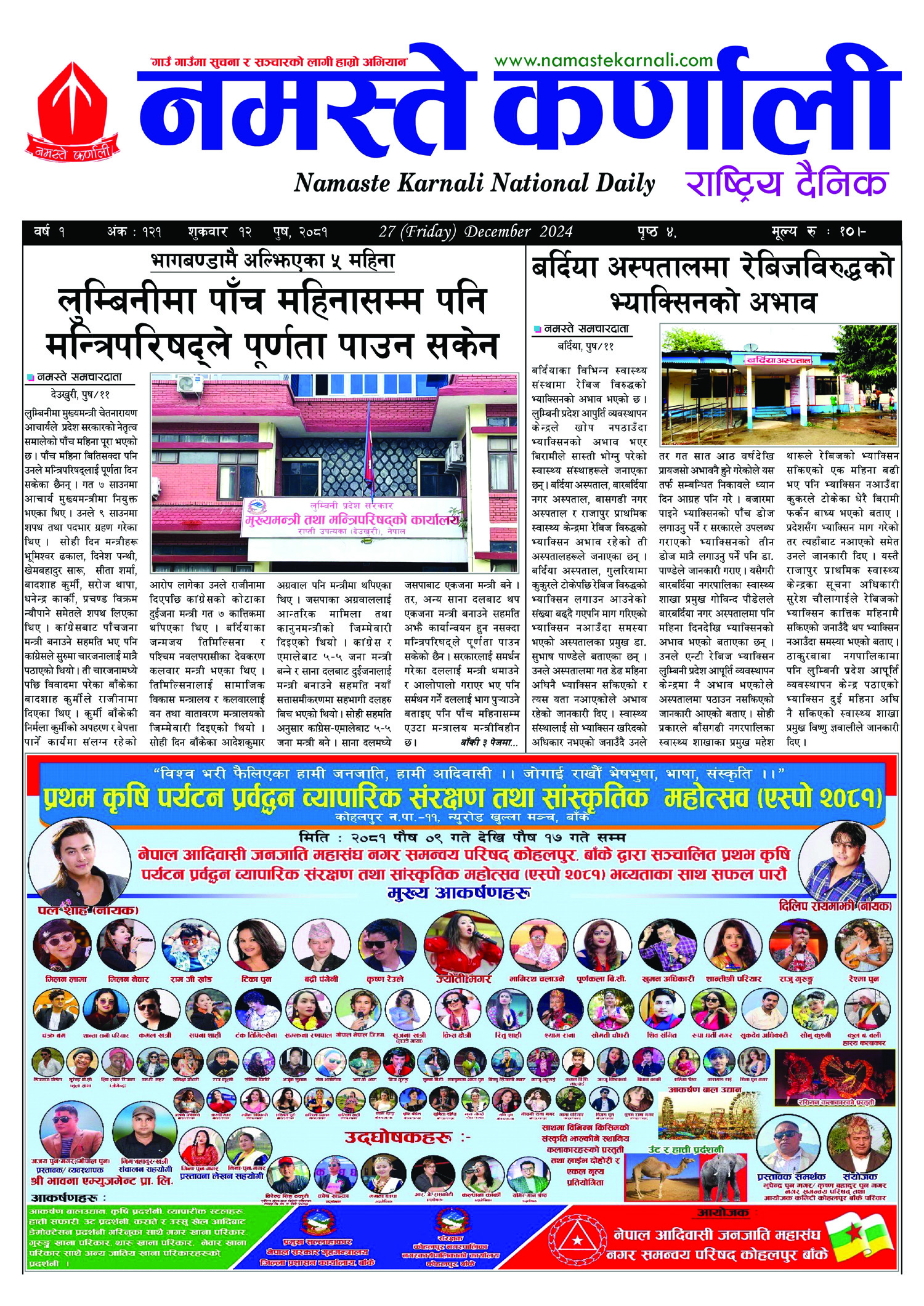 नमस्ते कर्णाली राष्ट्रिय दैनिक २०८१–०९–२७ गते