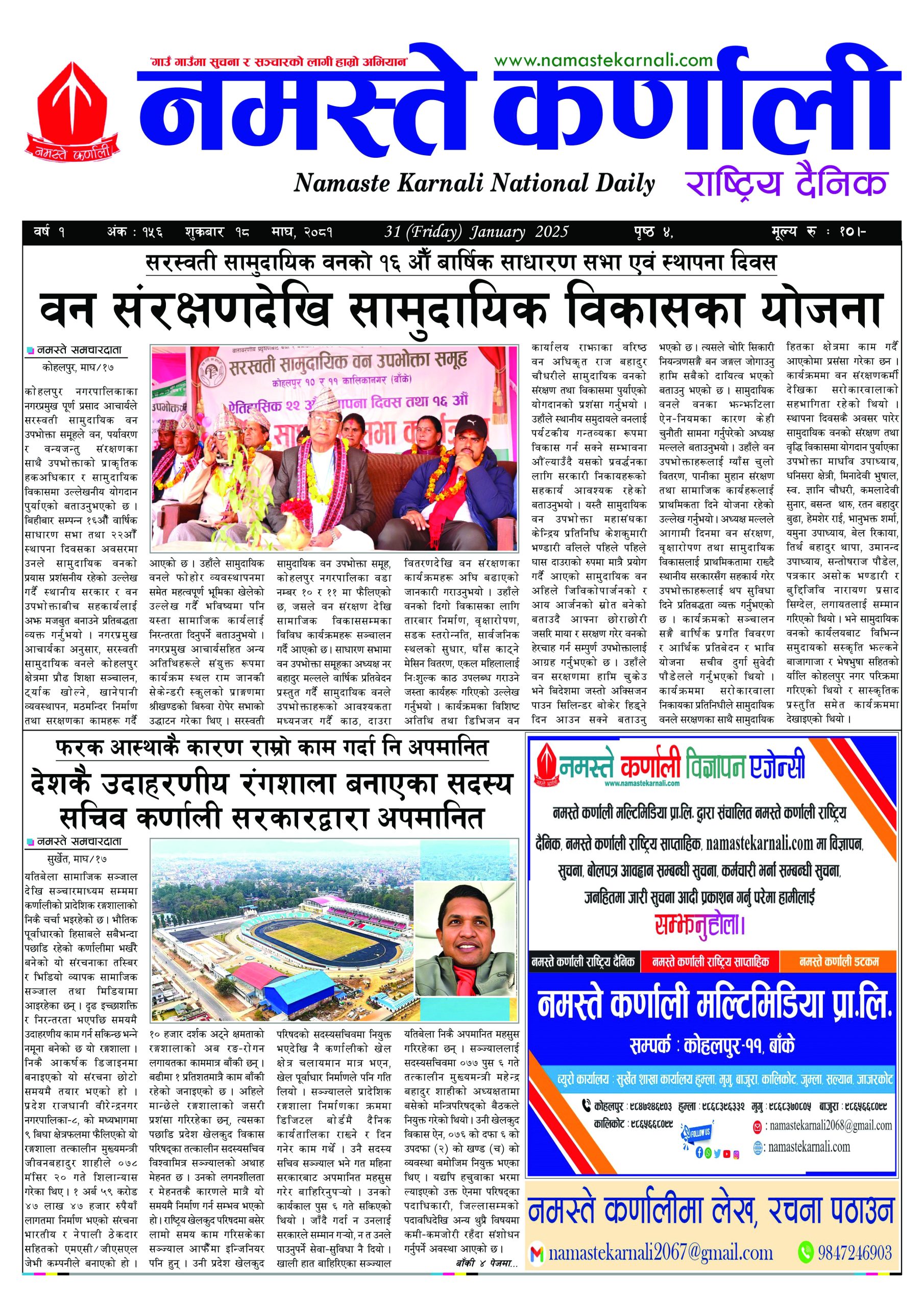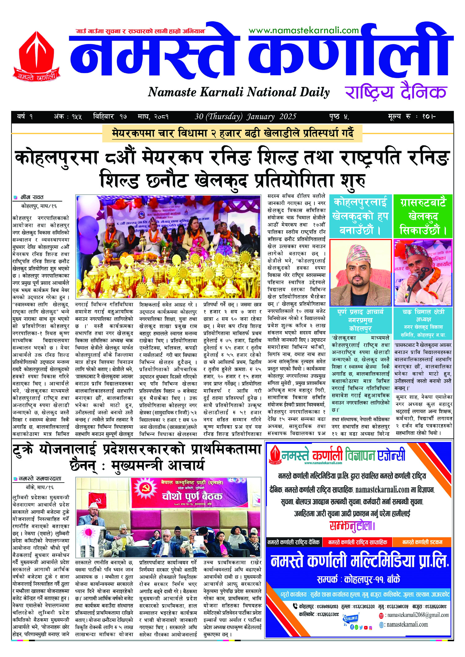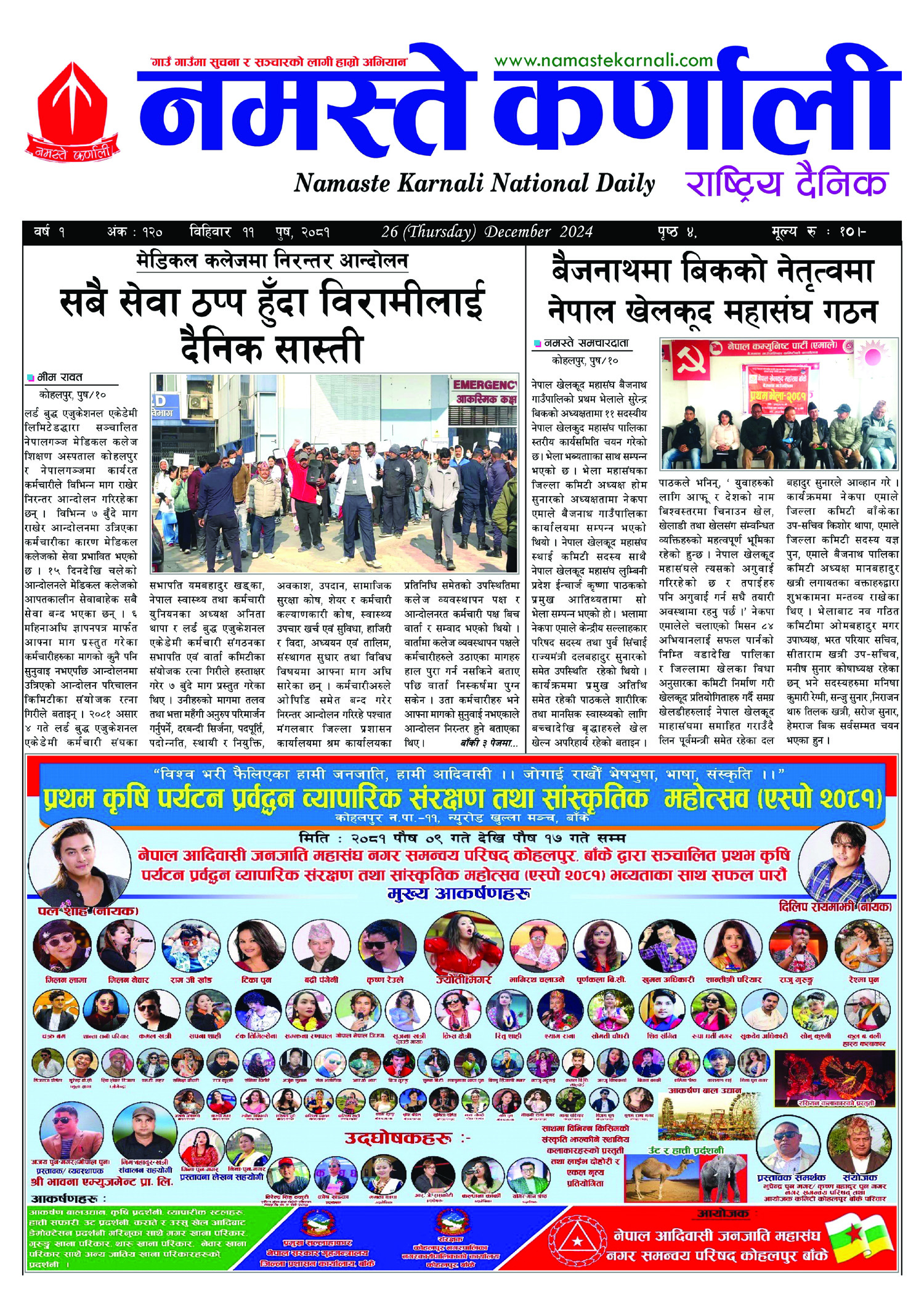 नमस्ते कर्णाली राष्ट्रिय दैनिक २०८१–१०–३० गते