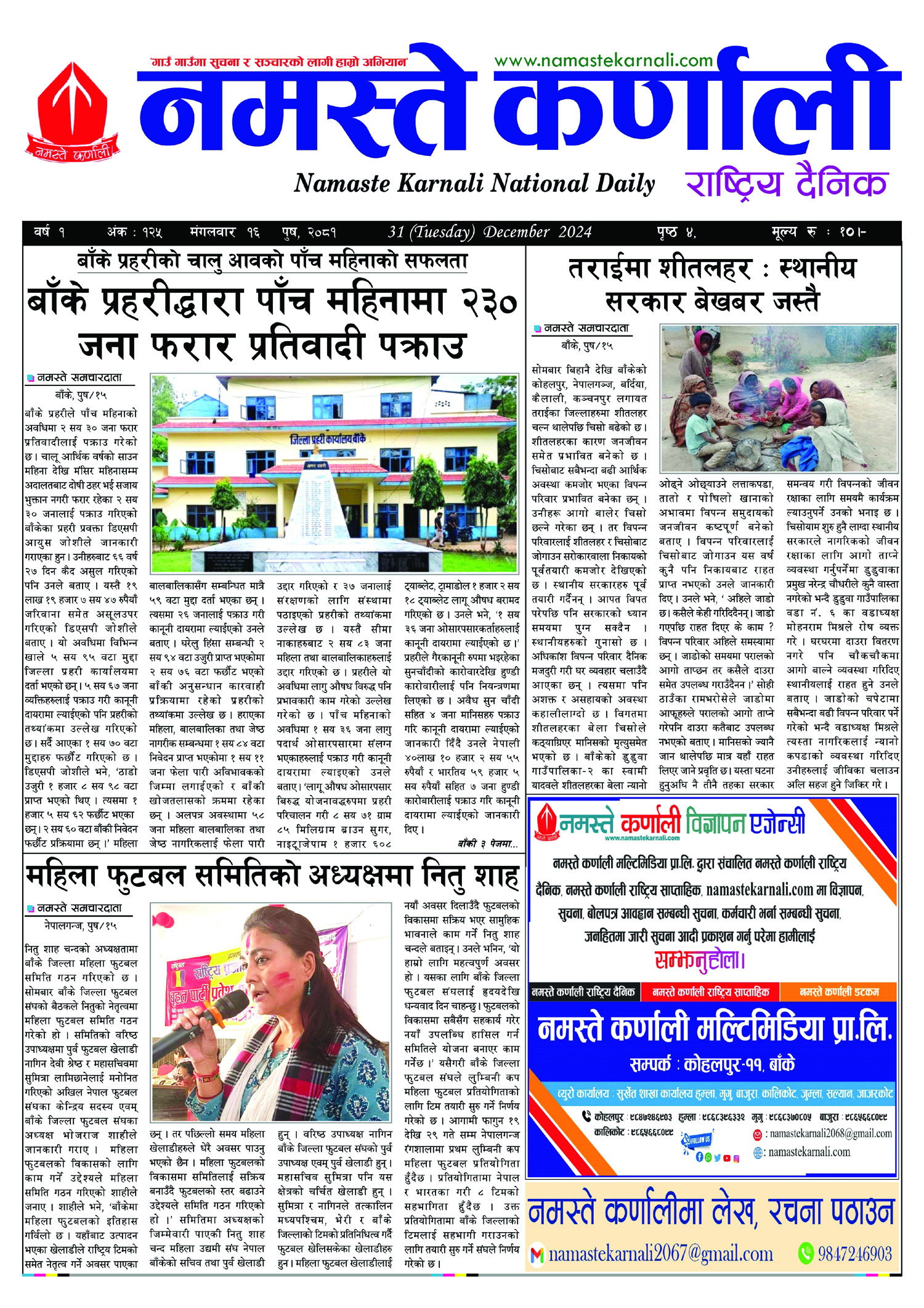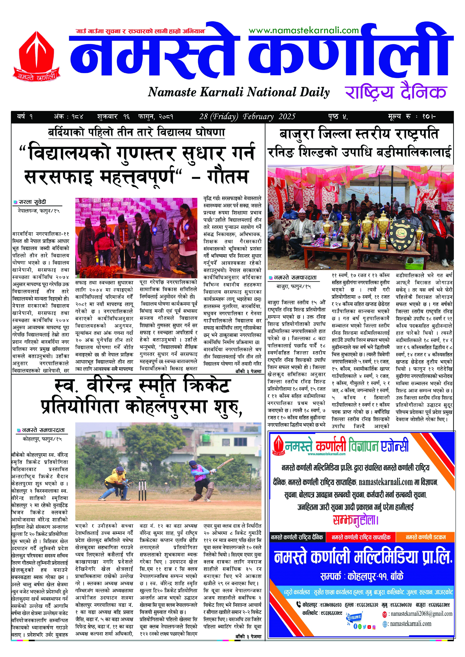 नमस्ते कर्णाली राष्ट्रिय दैनिक २०८१–१०–१६ गते
