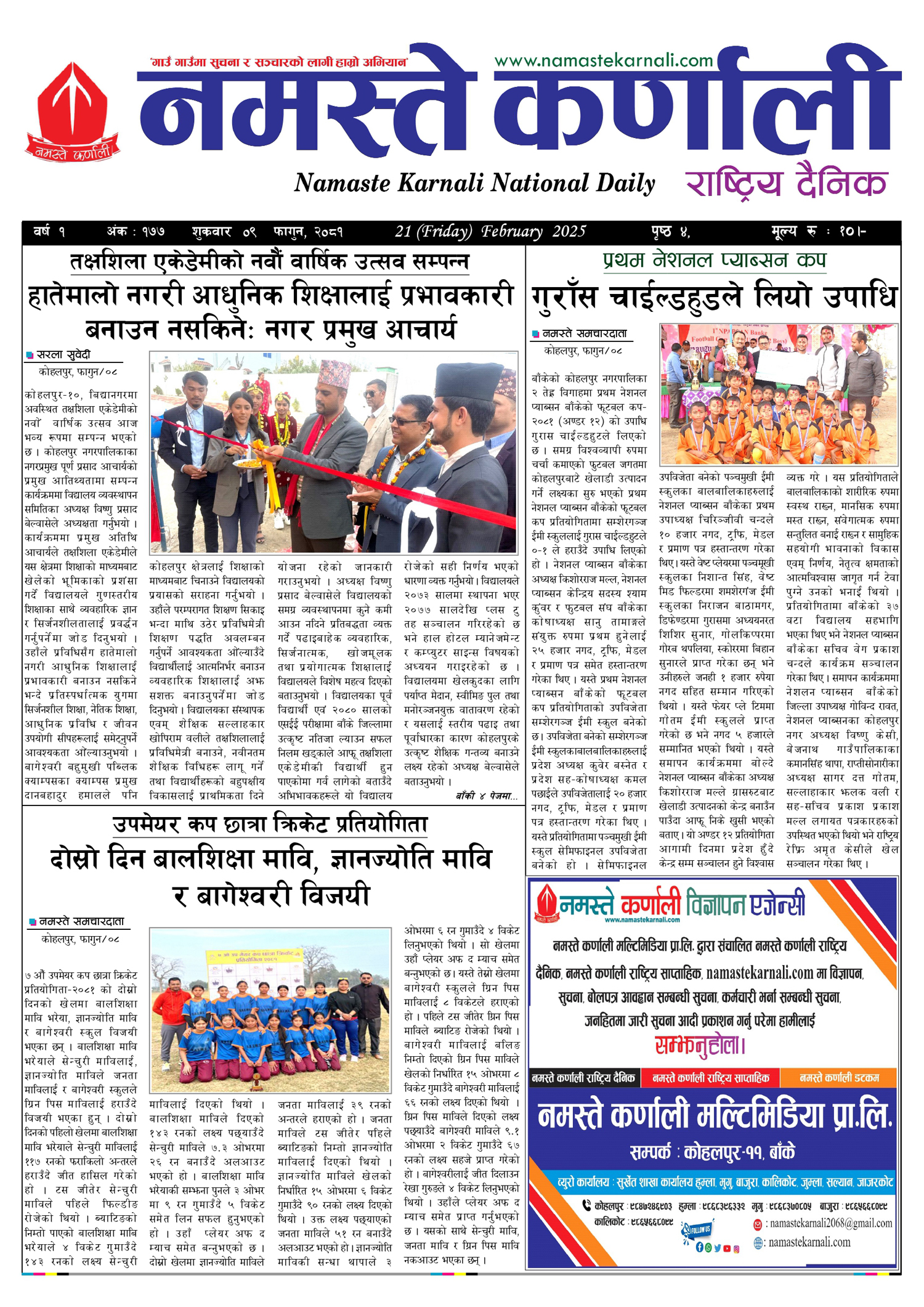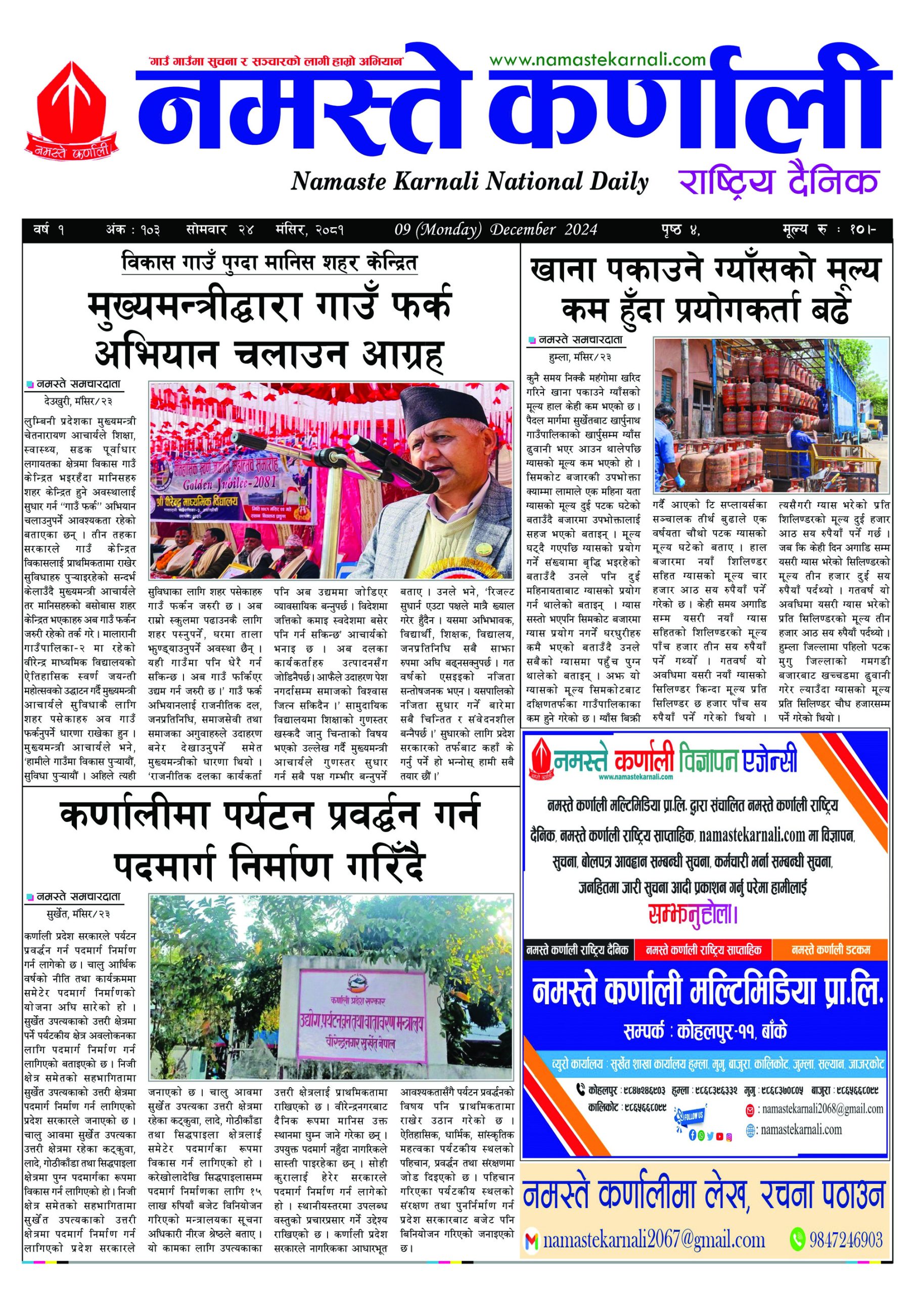 नमस्ते कर्णाली राष्ट्रिय दैनिक २०८१–११–०९ गते
