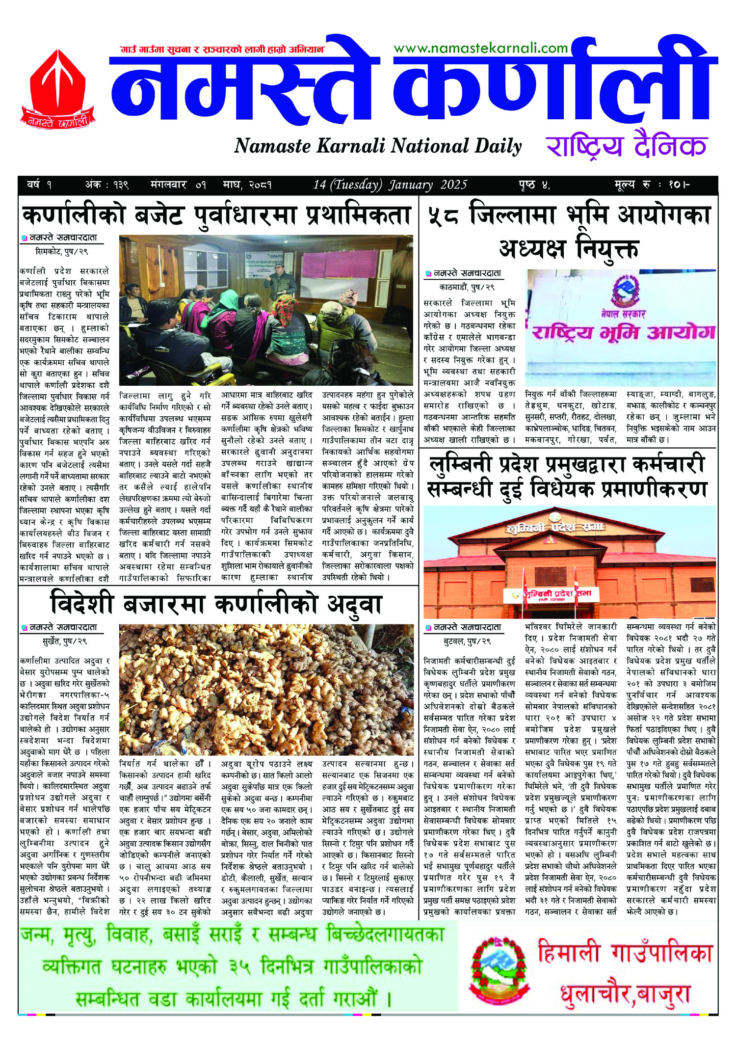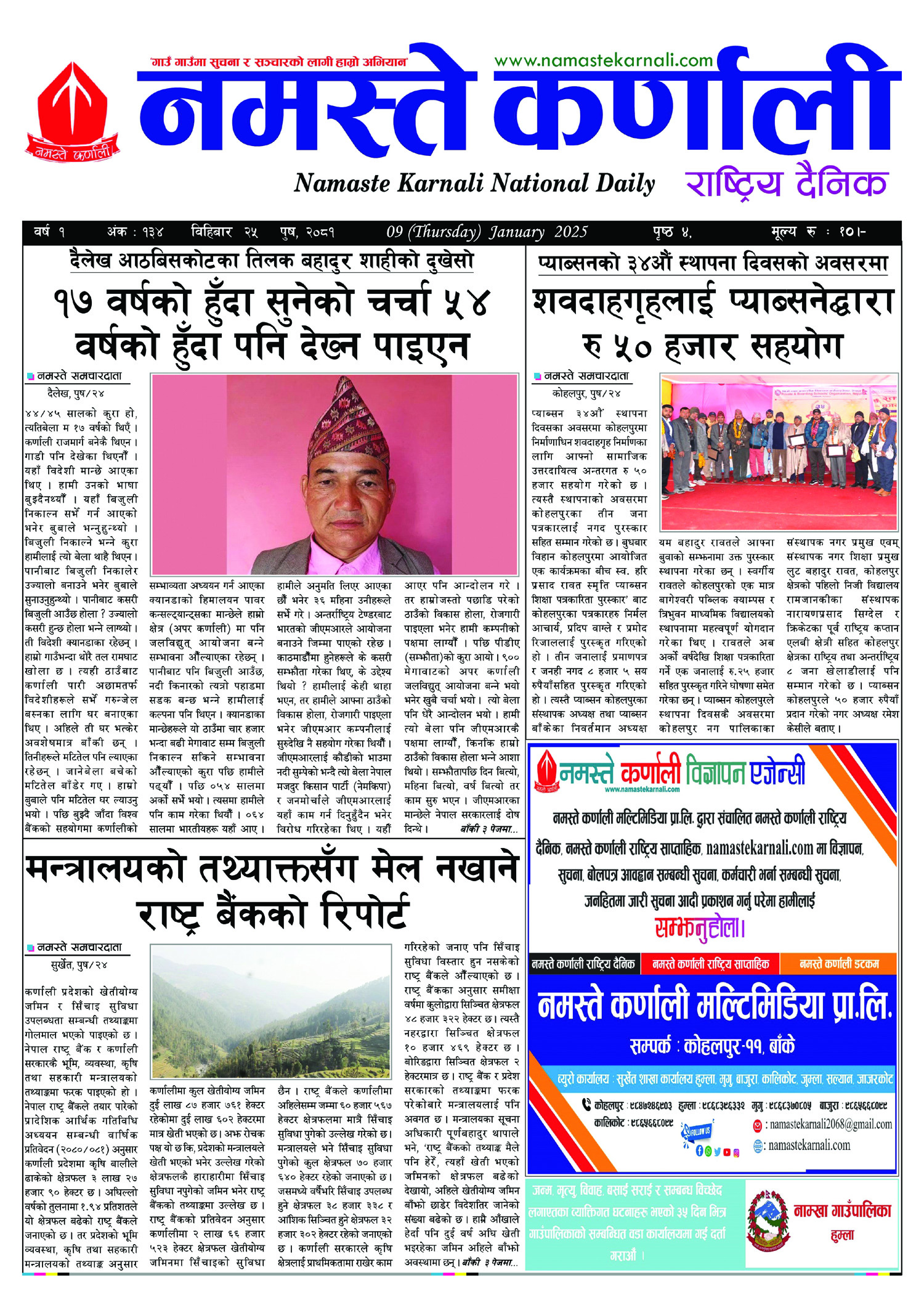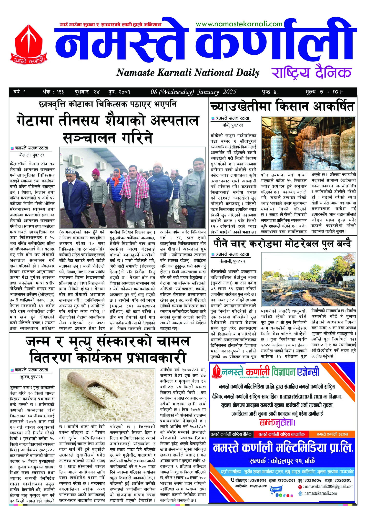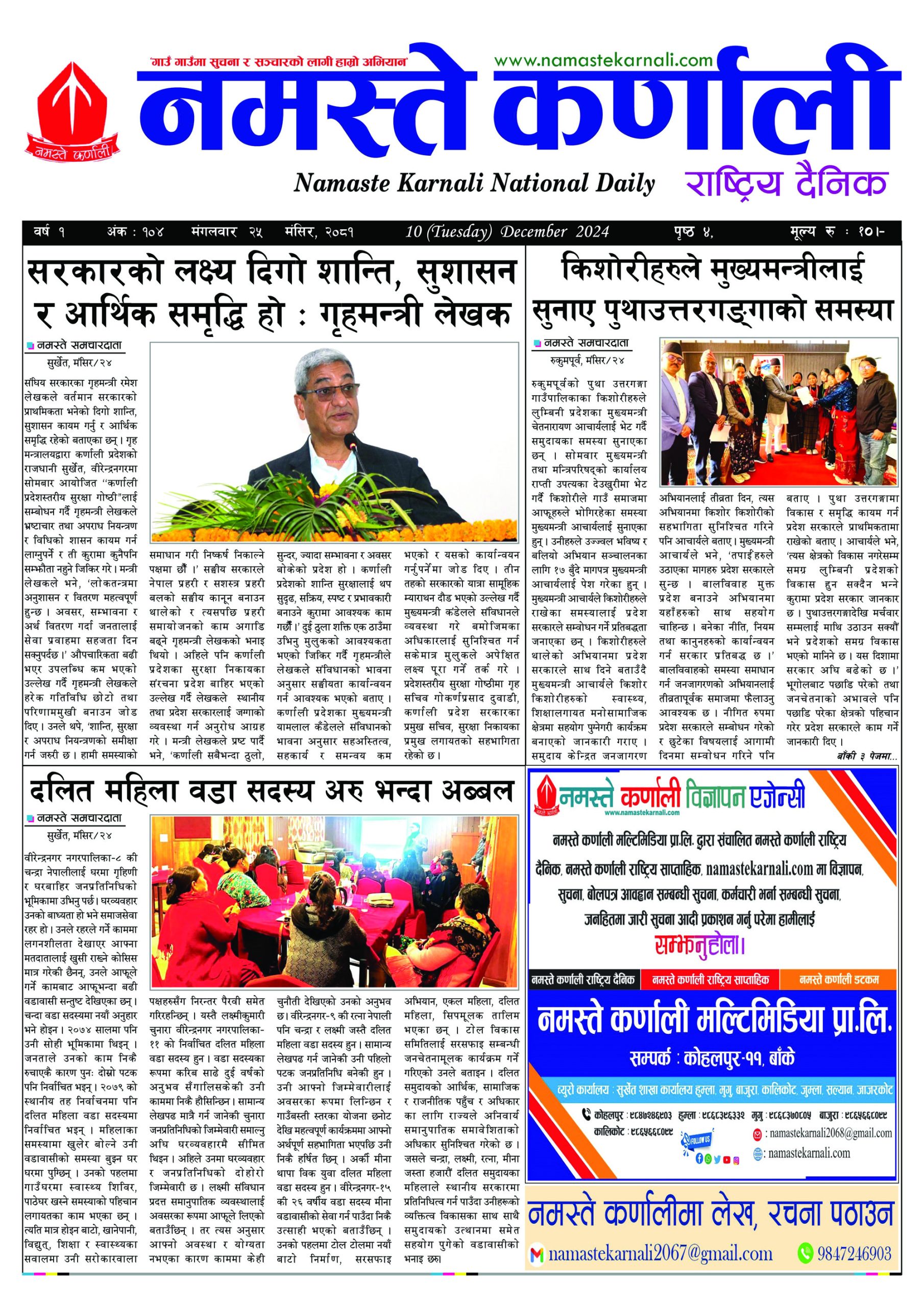नमस्ते कर्णाली राष्ट्रिय दैनिक २०८१–१०–०४ गते