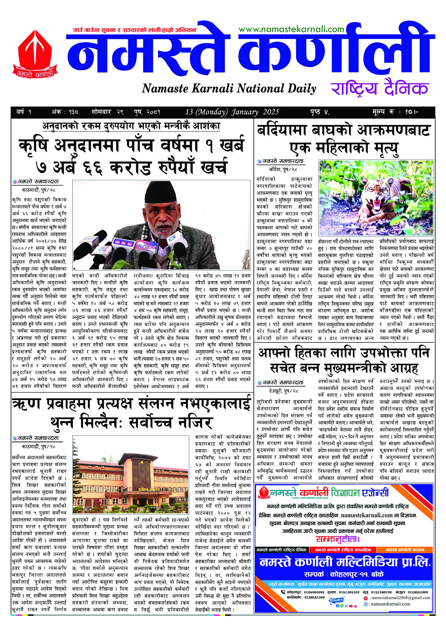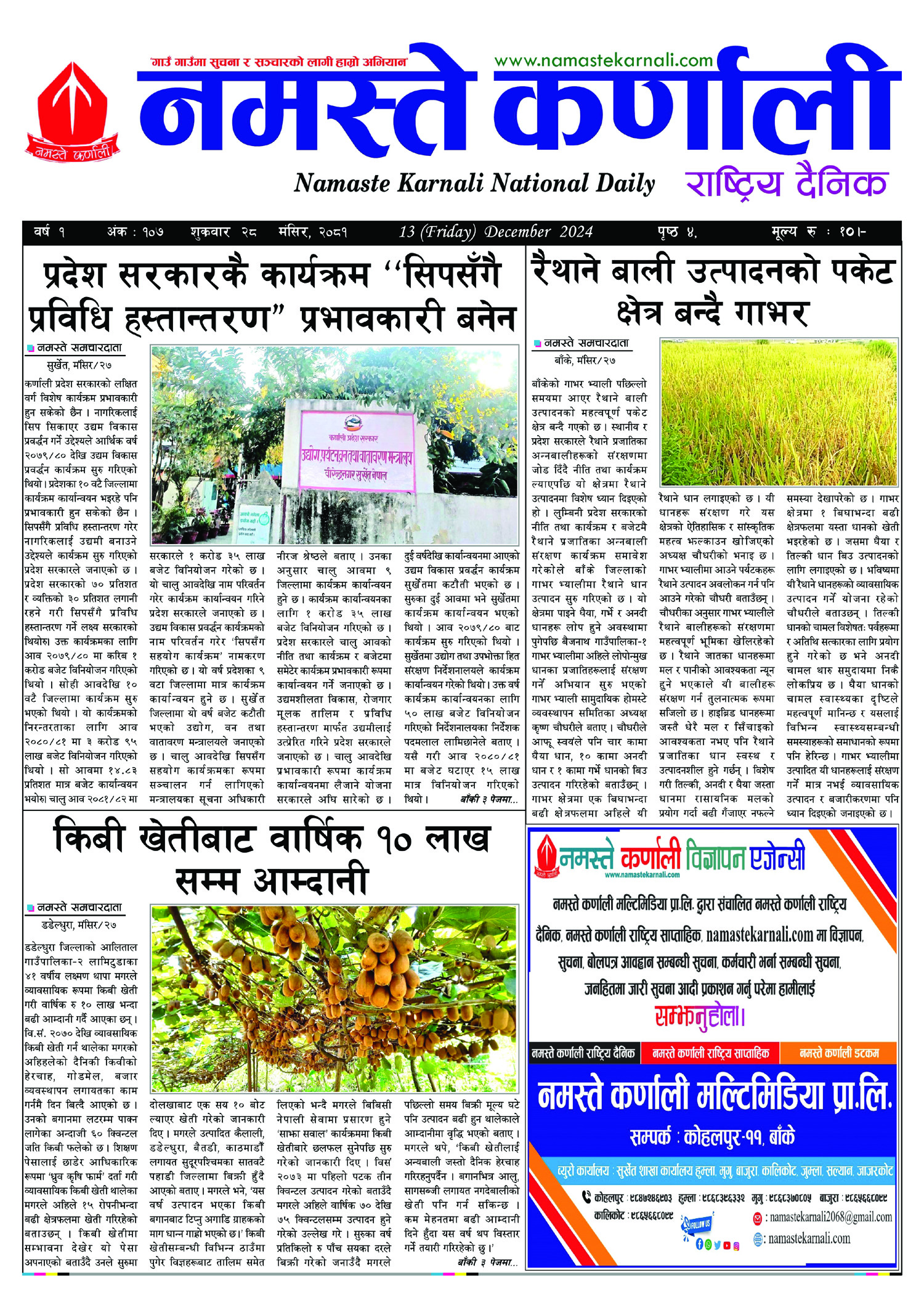 नमस्ते कर्णाली राष्ट्रिय दैनिक २०८१–१०–१३ गते