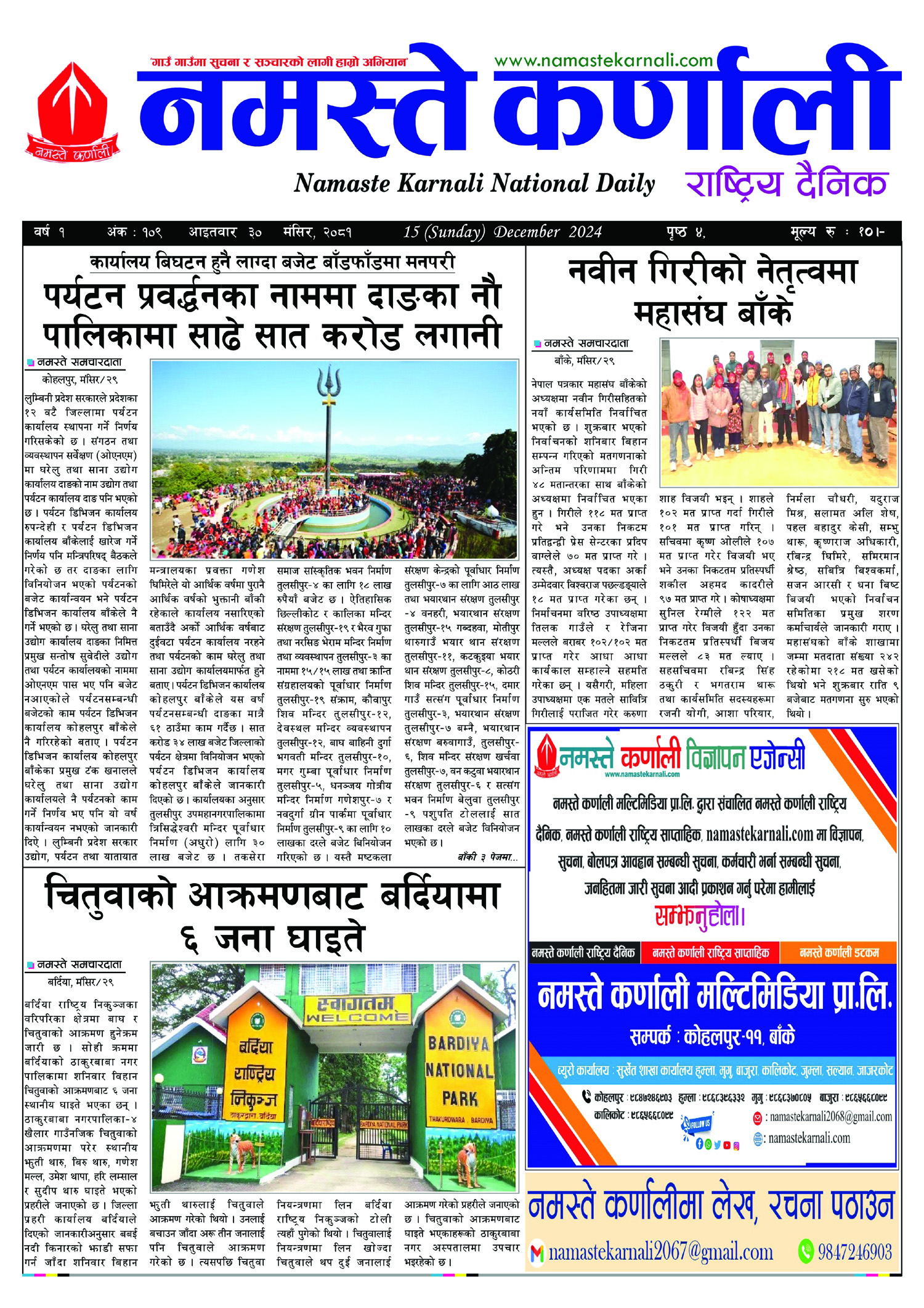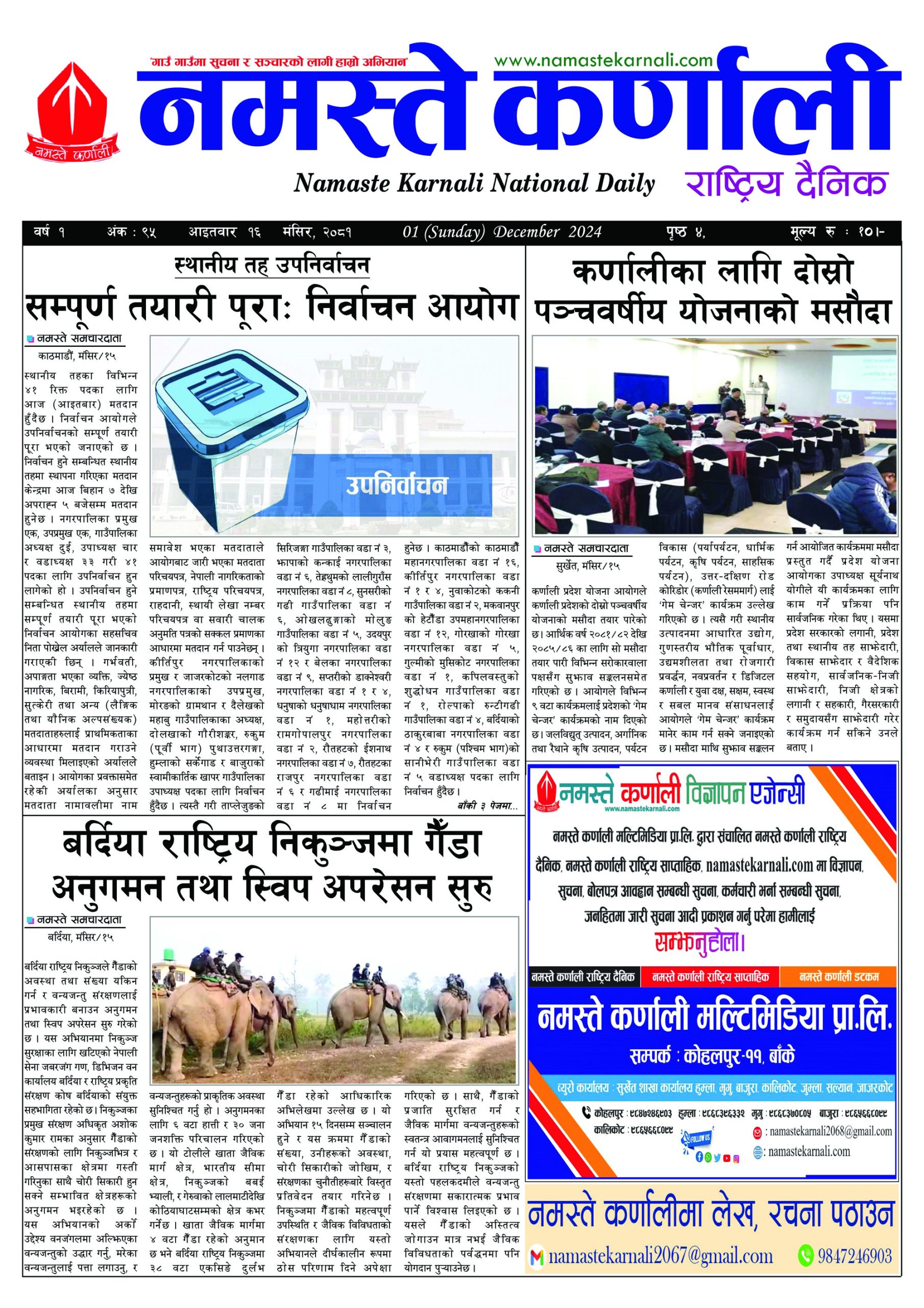 नमस्ते कर्णाली राष्ट्रिय दैनिक २०८१–०८–१५ गते