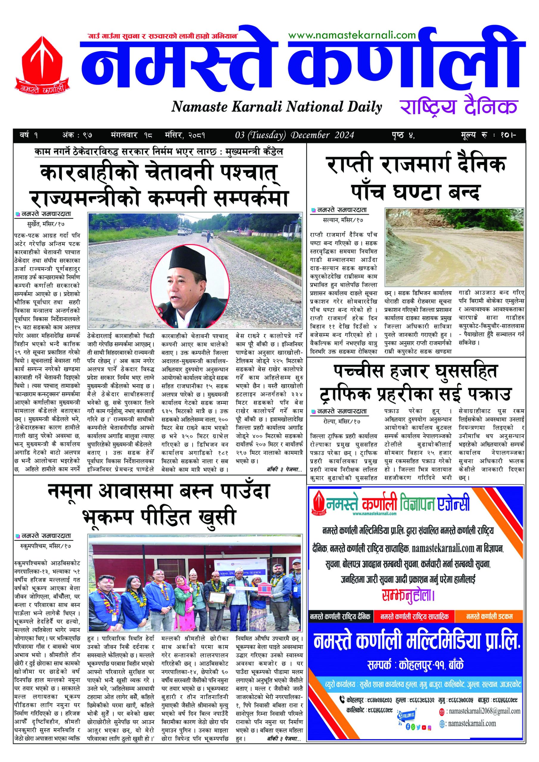 नमस्ते कर्णाली राष्ट्रिय दैनिक २०८१–१०–०३ गते
