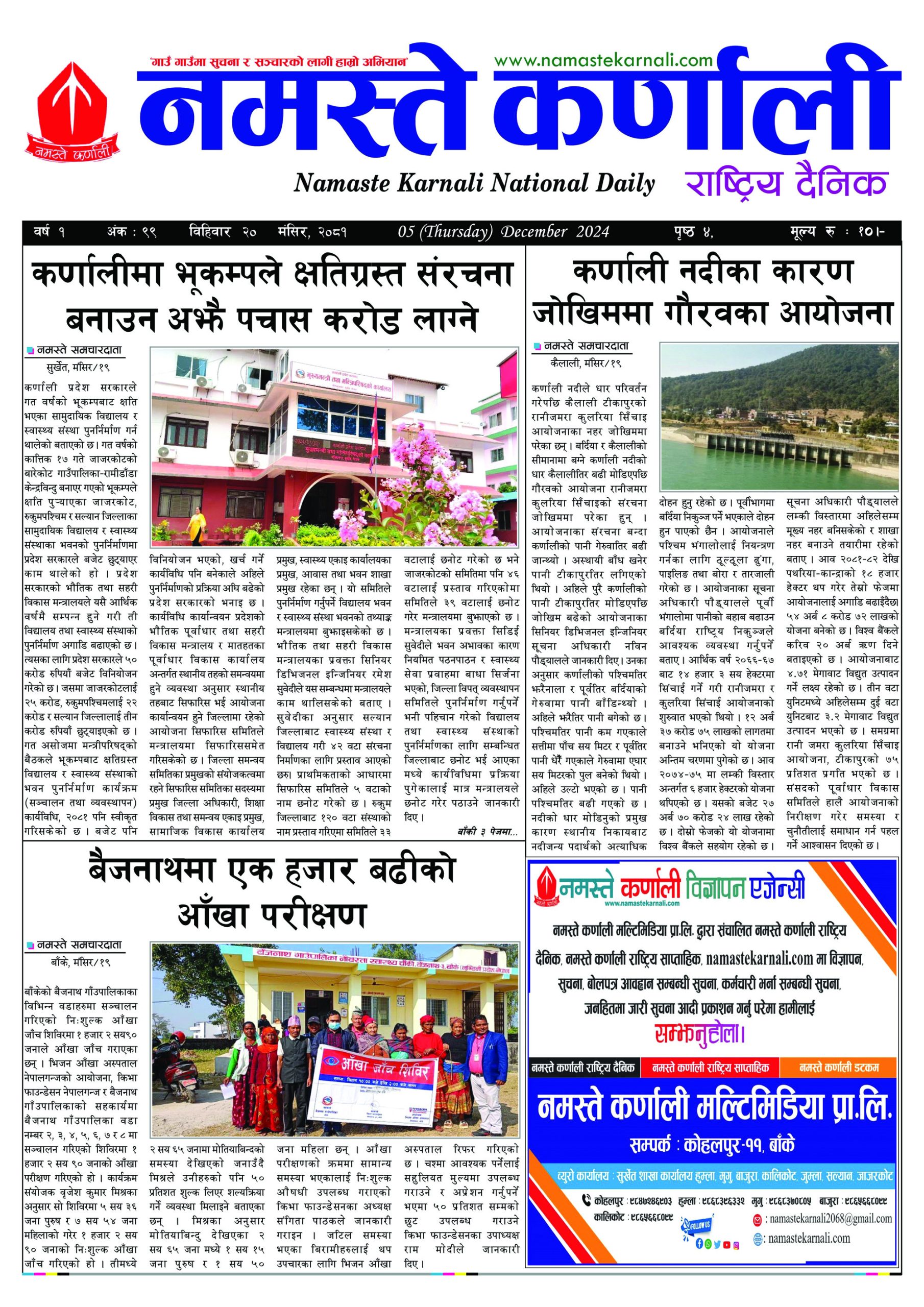 नमस्ते कर्णाली राष्ट्रिय दैनिक २०८१–०९–१९ गते