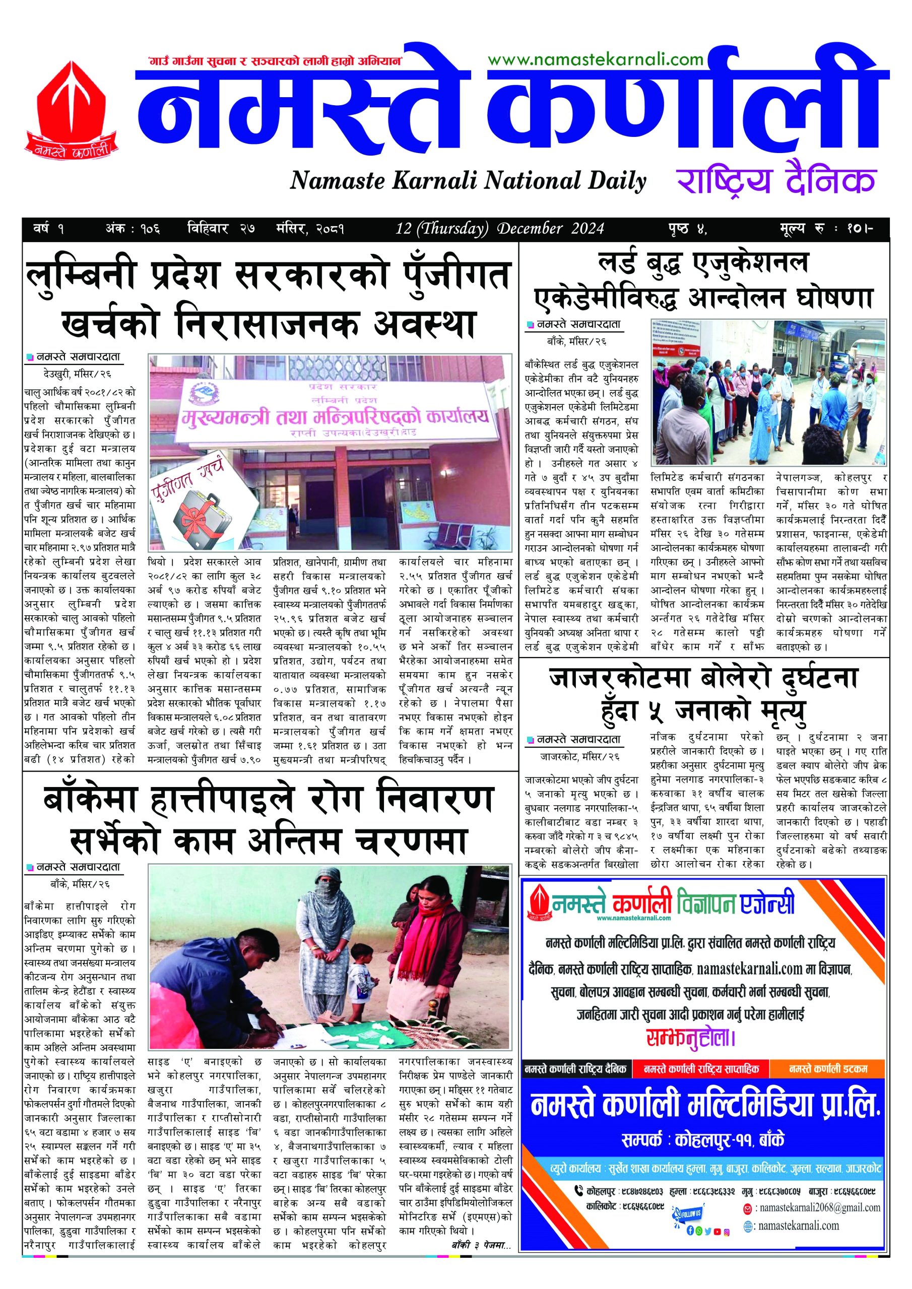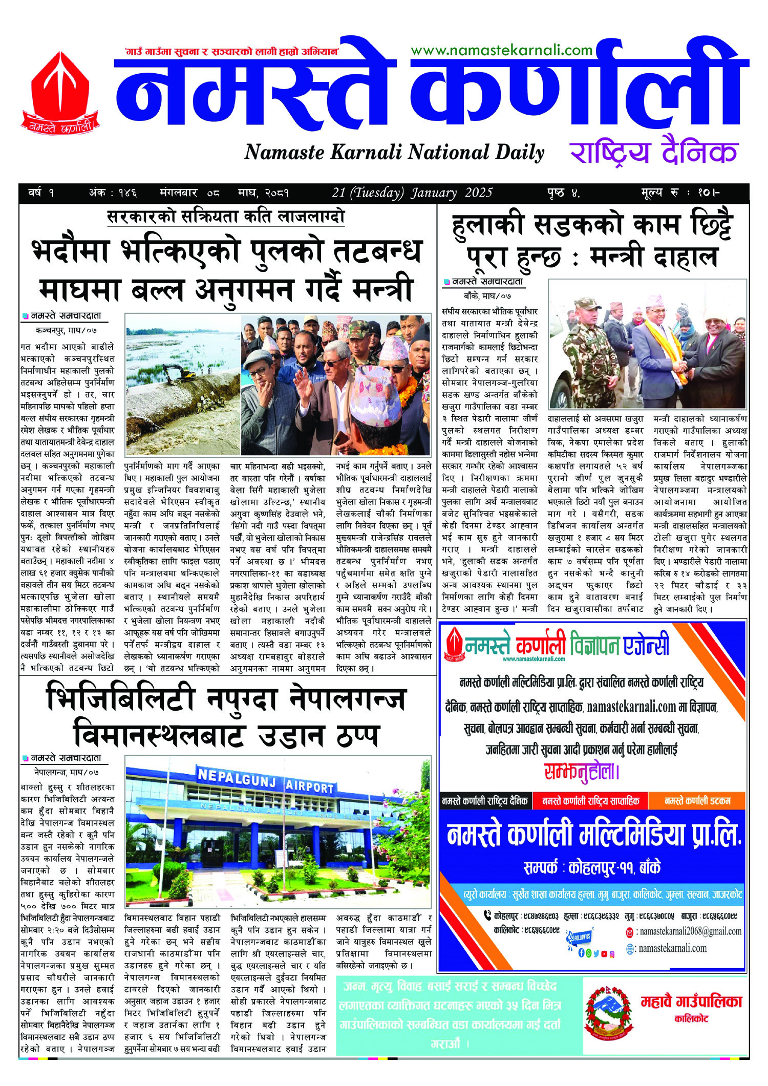 नमस्ते कर्णाली राष्ट्रिय दैनिक २०८१–१०–०५ गते