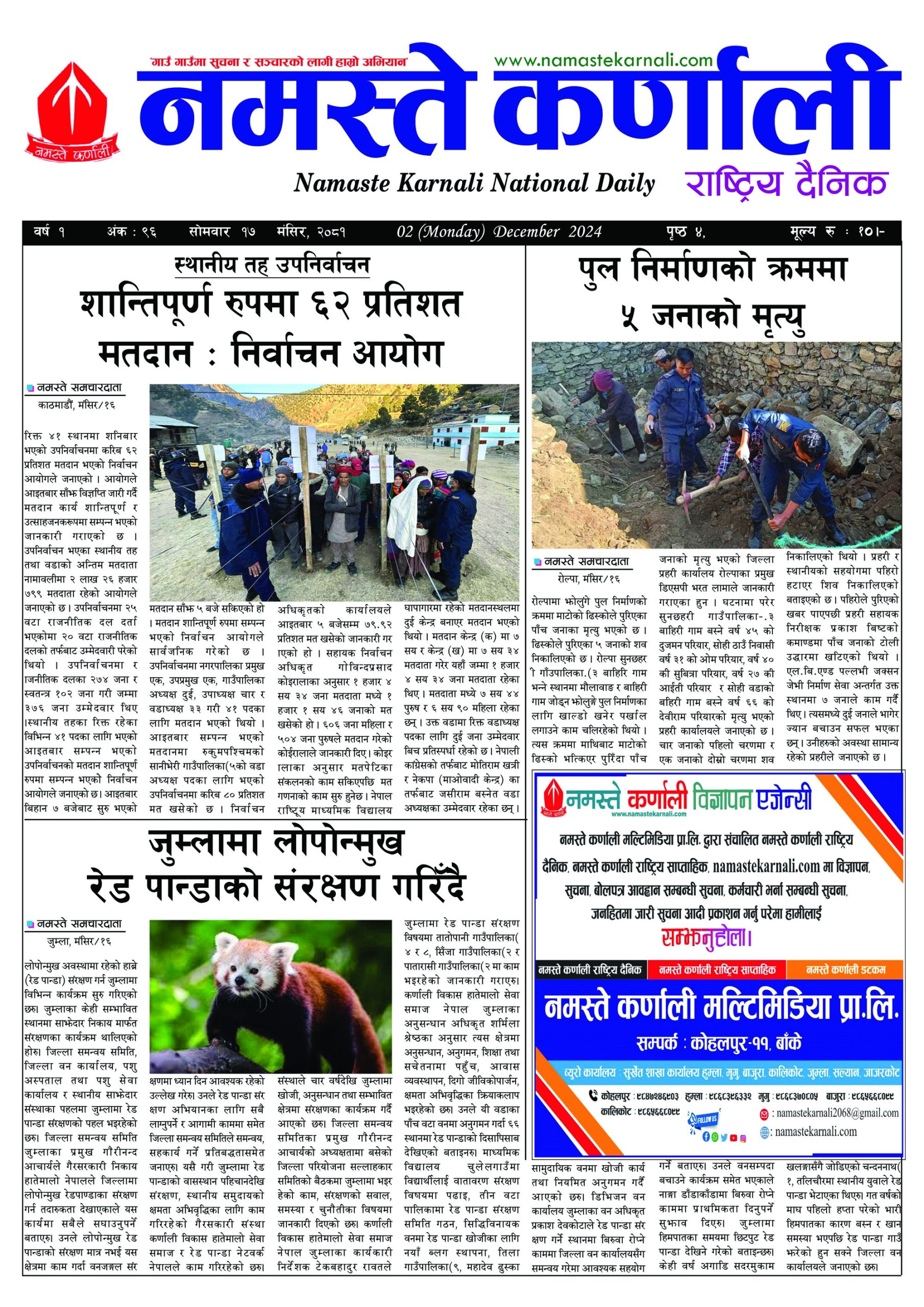 नमस्ते कर्णाली राष्ट्रिय दैनिक २०८१–१०–०१ गते