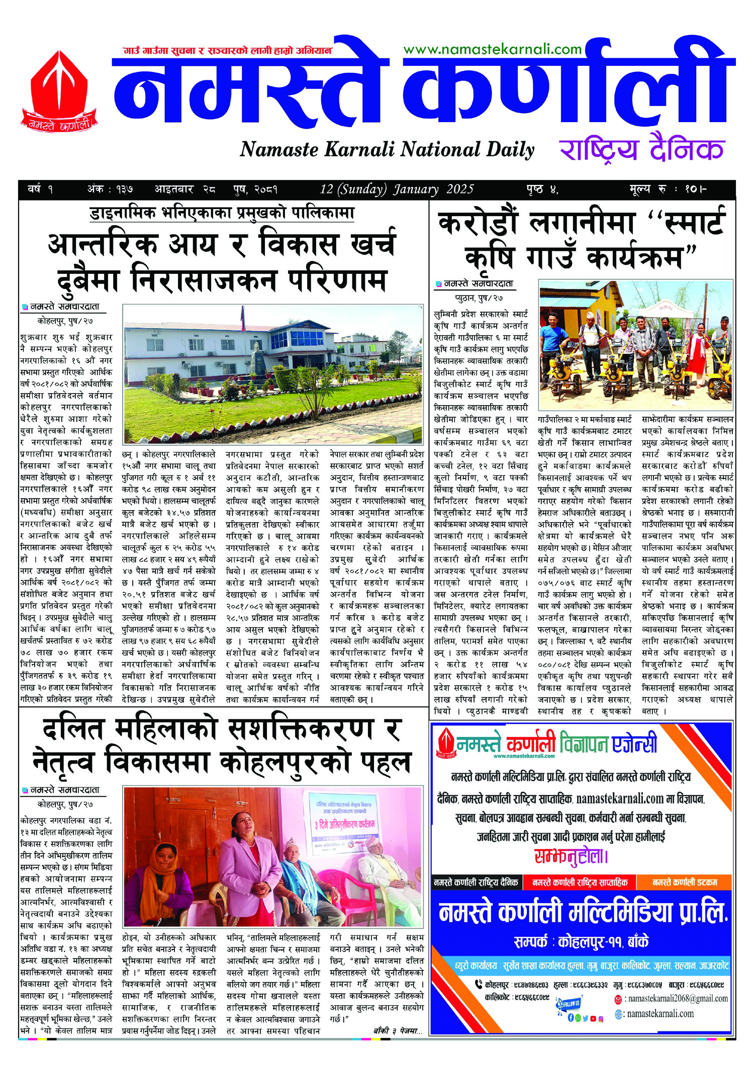 नमस्ते कर्णाली राष्ट्रिय दैनिक २०८१–१०–१२ गते
