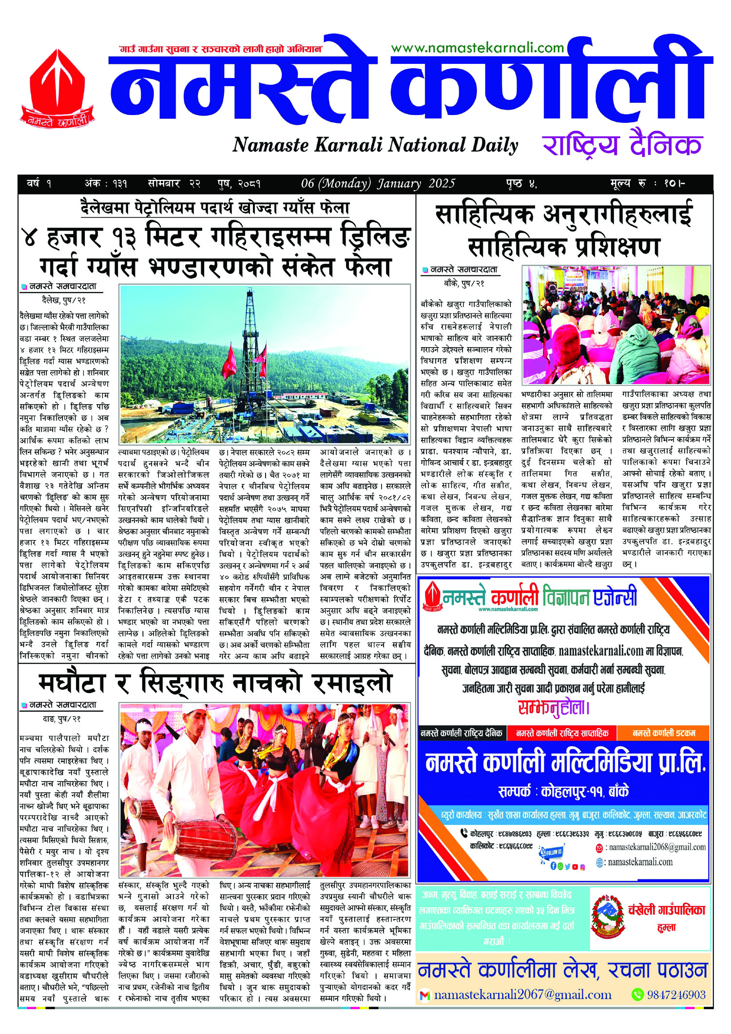 नमस्ते कर्णाली राष्ट्रिय दैनिक २०८१–१०–०६ गते