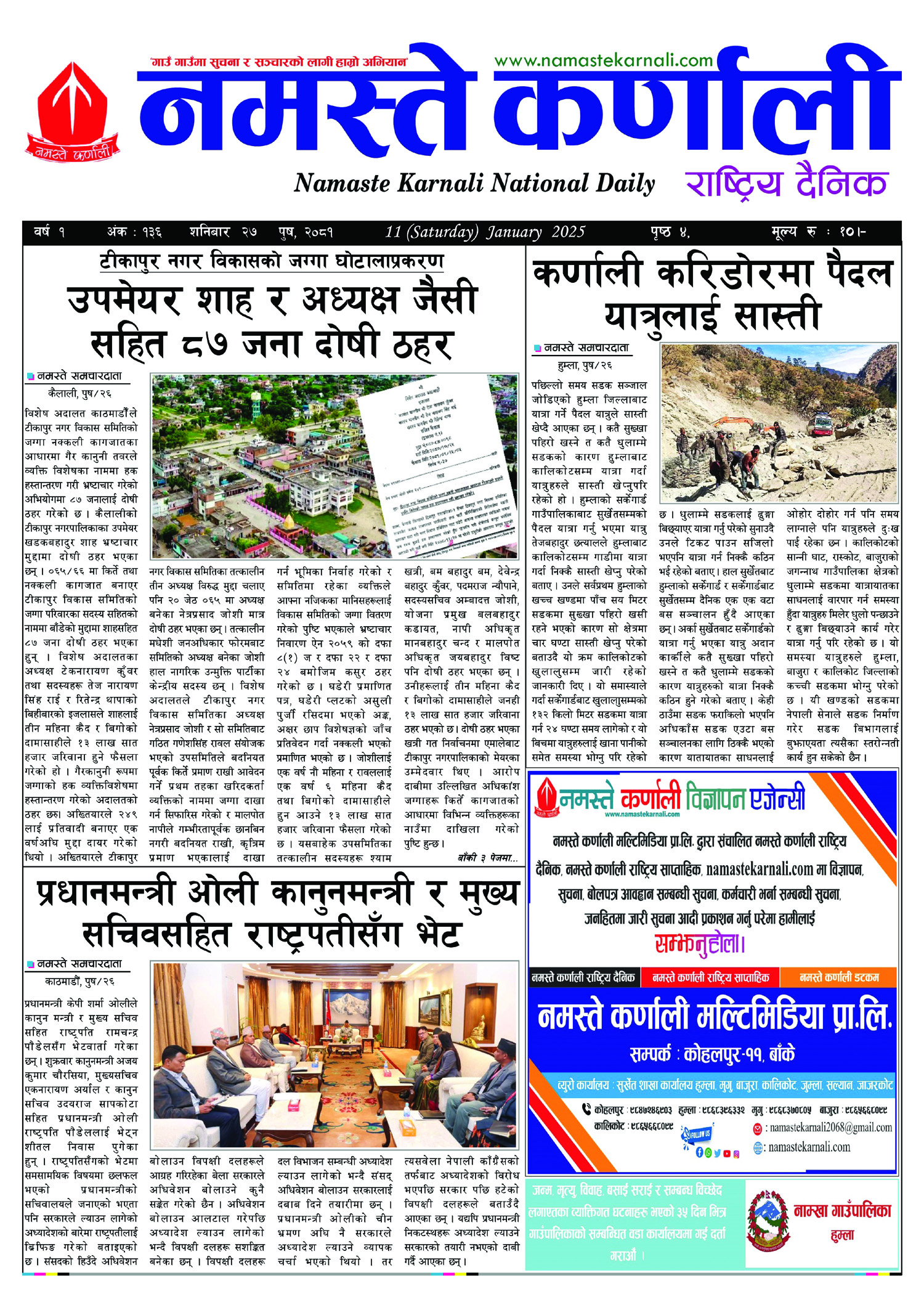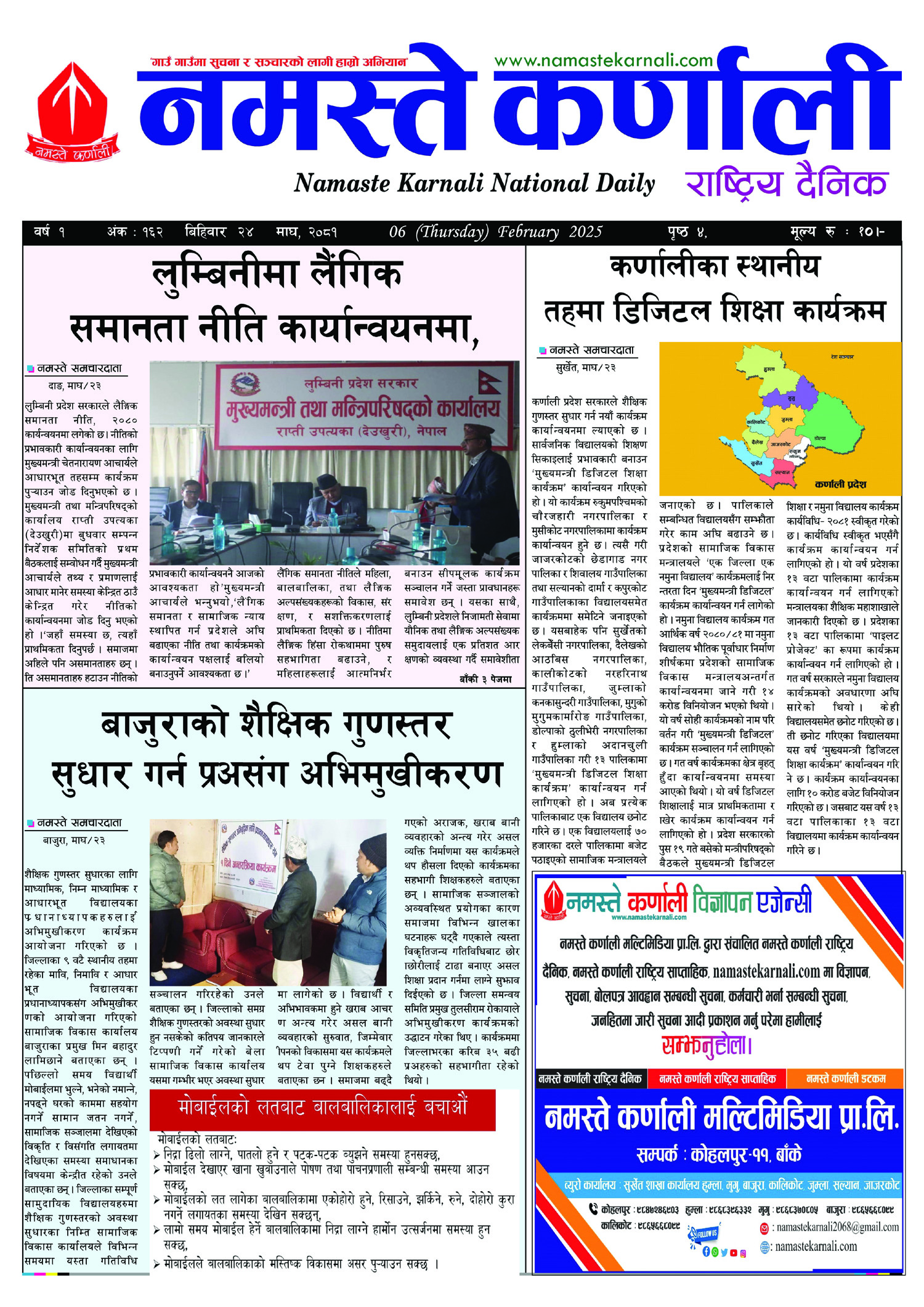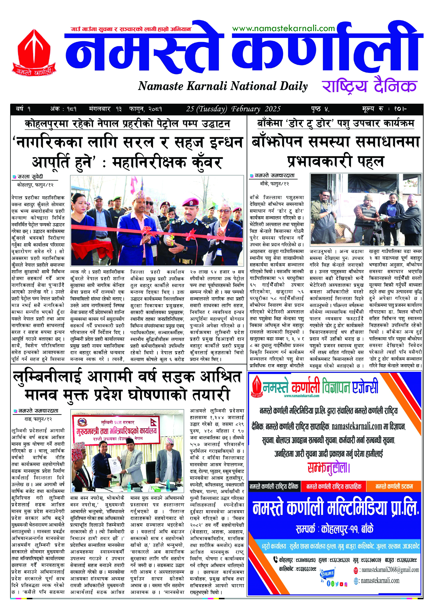 नमस्ते कर्णाली राष्ट्रिय दैनिक २०८१–११–२५ गते