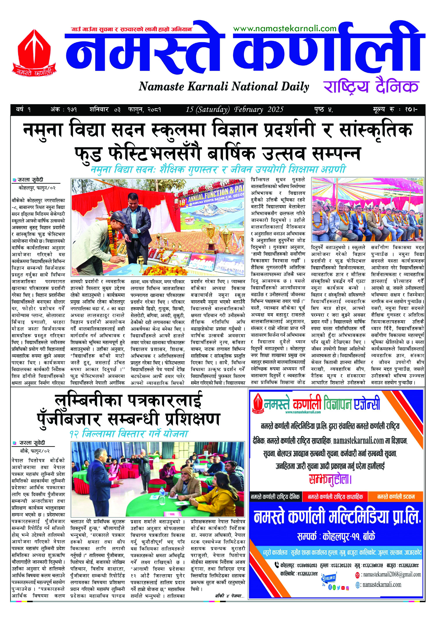 नमस्ते कर्णाली राष्ट्रिय दैनिक २०८१–११–१५ गते
