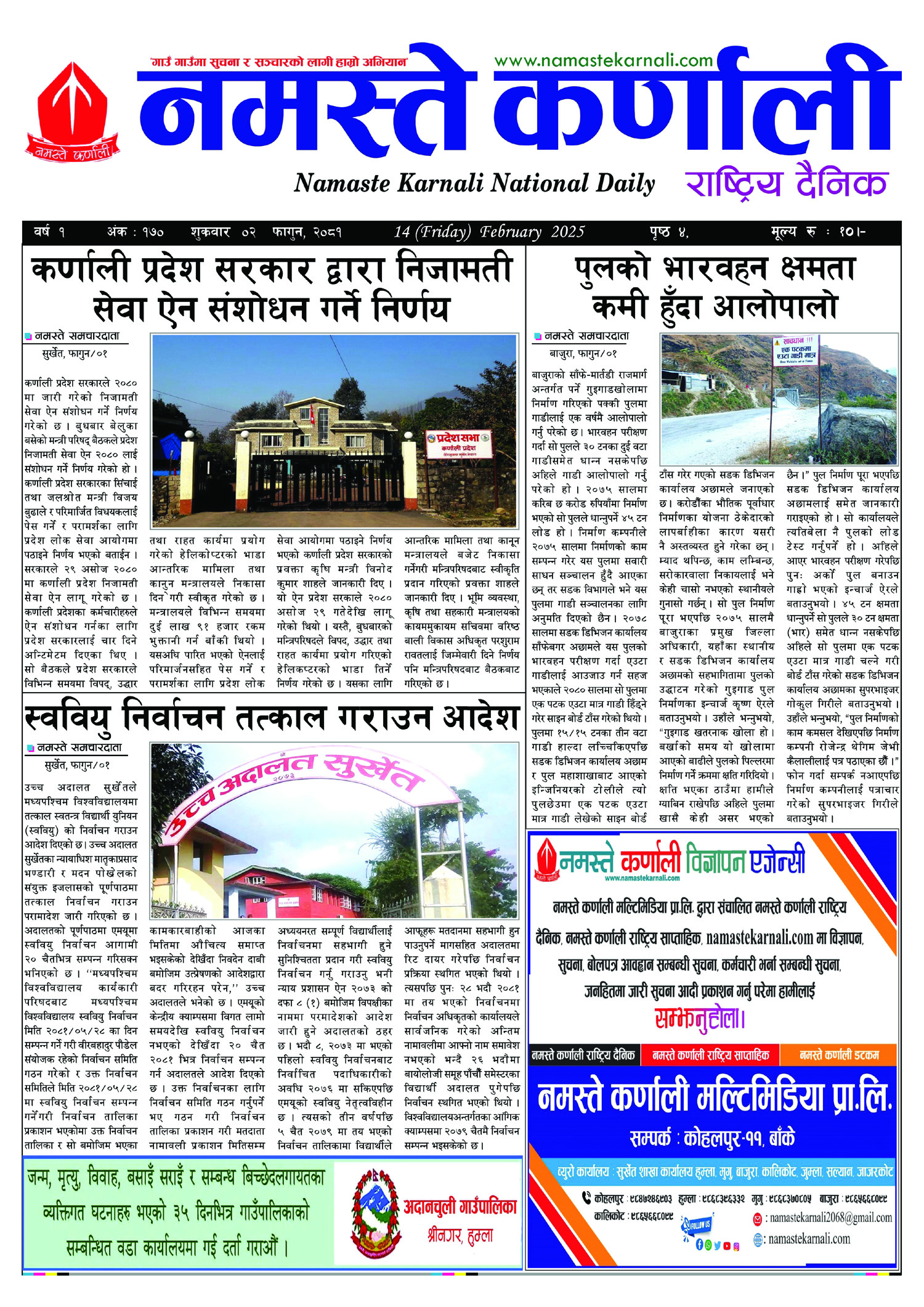 नमस्ते कर्णाली राष्ट्रिय दैनिक २०८१–१०–१४ गते