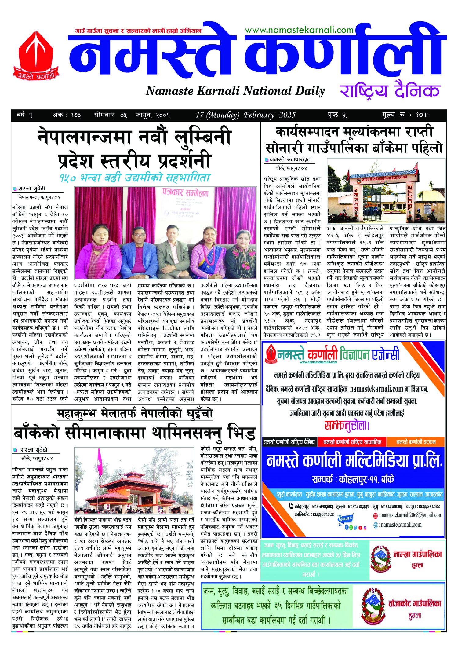 नमस्ते कर्णाली राष्ट्रिय दैनिक २०८१–११–१७ गते