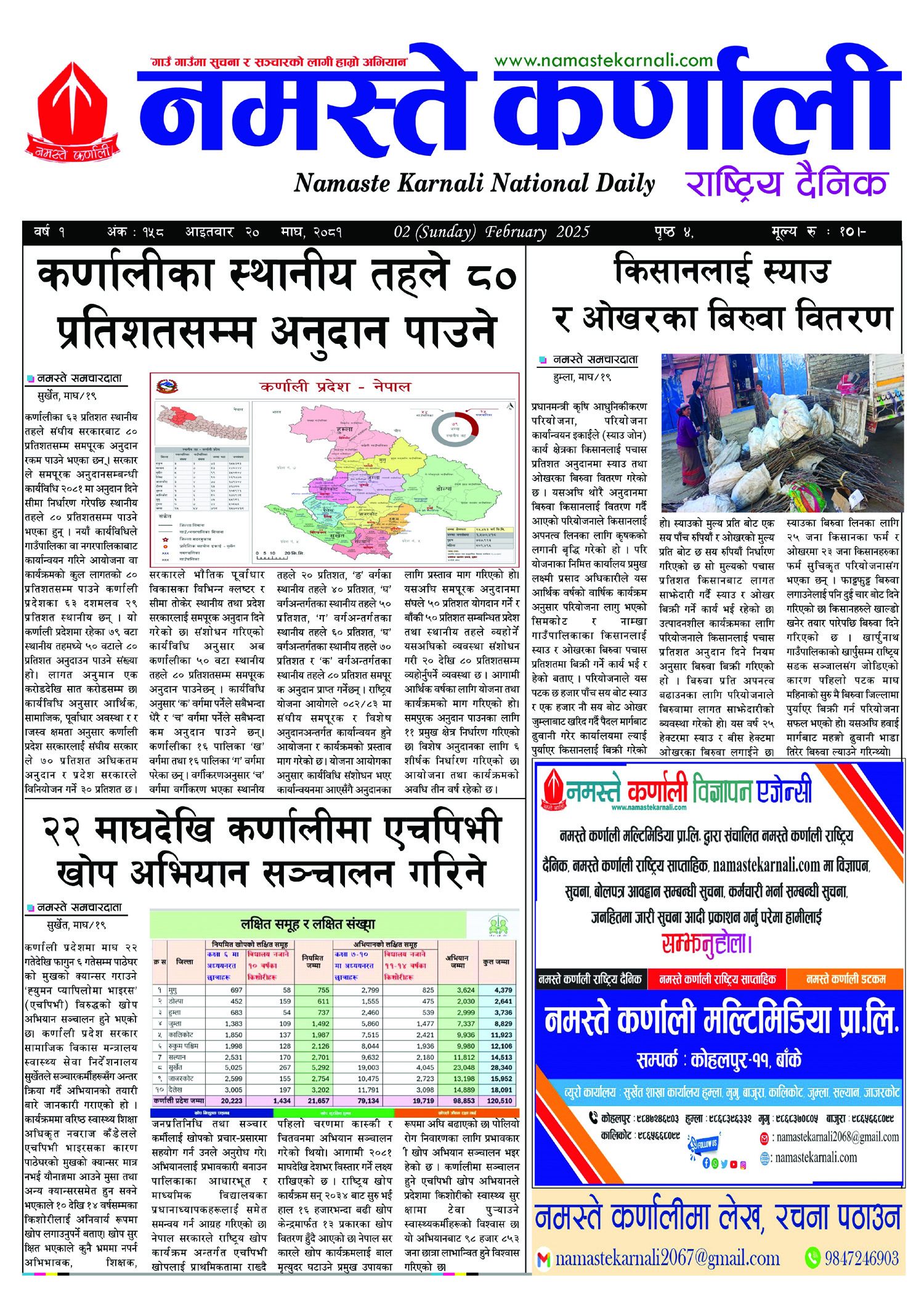 नमस्ते कर्णाली राष्ट्रिय दैनिक २०८१–१०–०२ गते