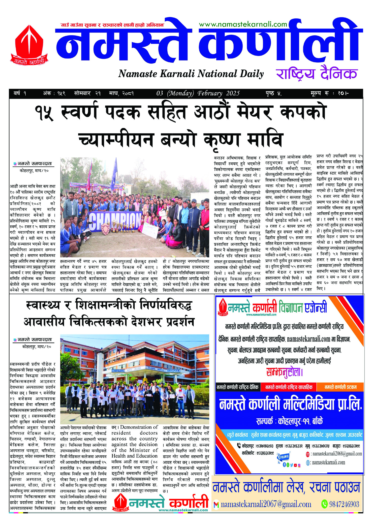 नमस्ते कर्णाली राष्ट्रिय दैनिक २०८१–११–०३ गते