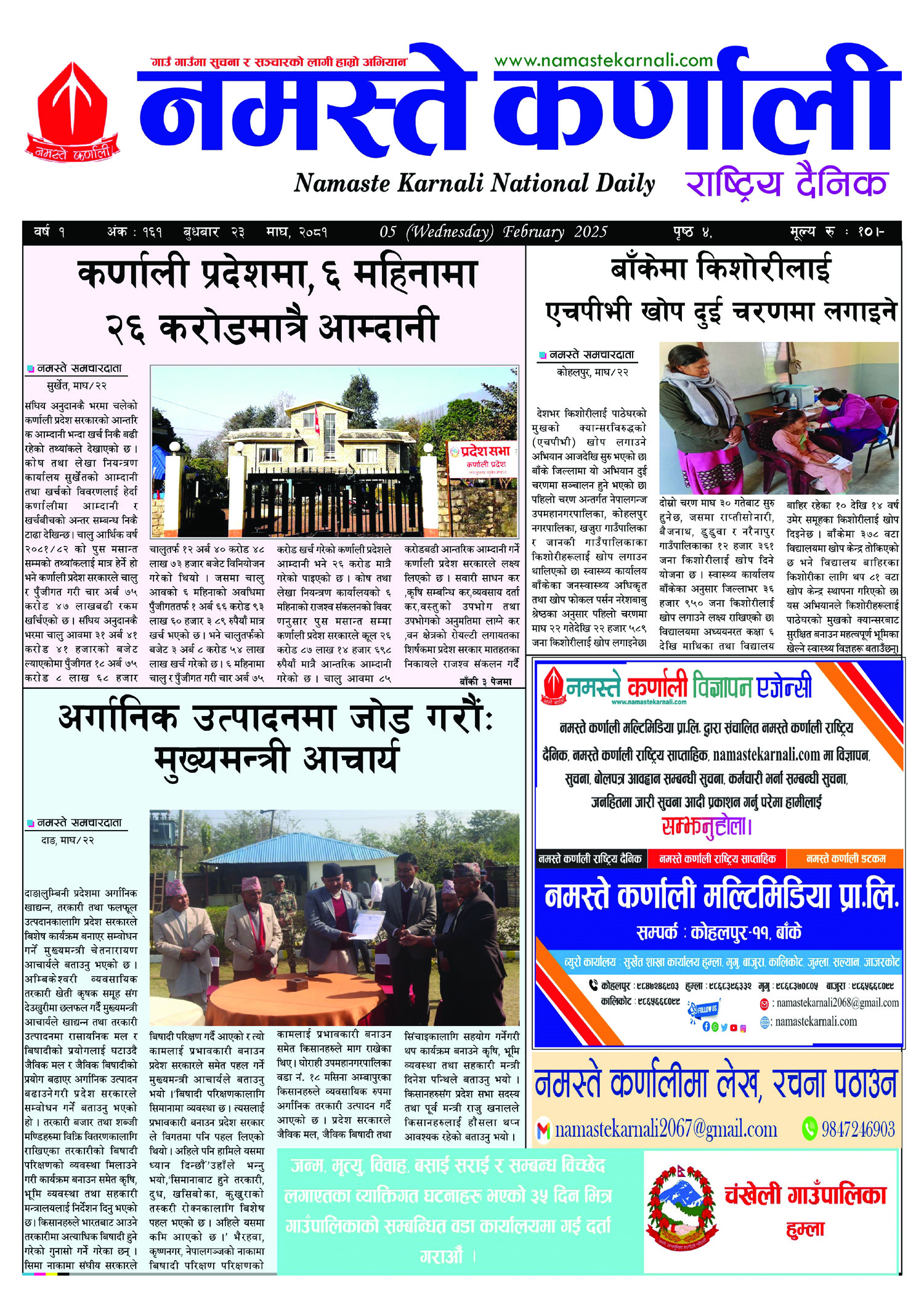 नमस्ते कर्णाली राष्ट्रिय दैनिक २०८१–११–०५ गते