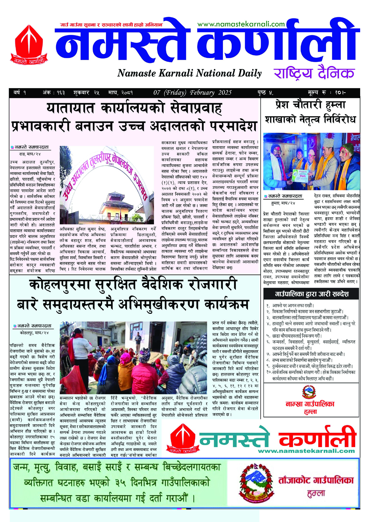 नमस्ते कर्णाली राष्ट्रिय दैनिक २०८१–१०–०७ गते