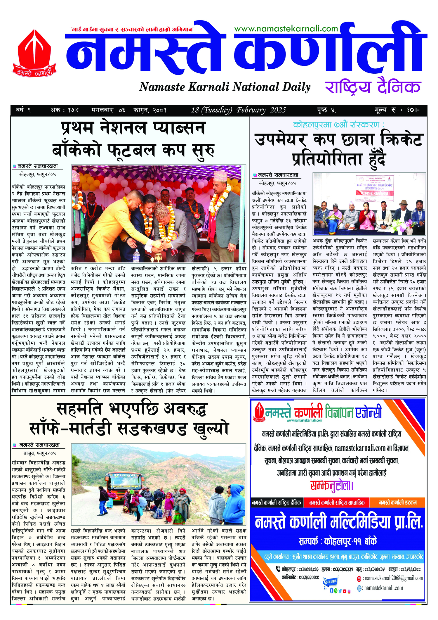 नमस्ते कर्णाली राष्ट्रिय दैनिक २०८१–१०–१८ गते