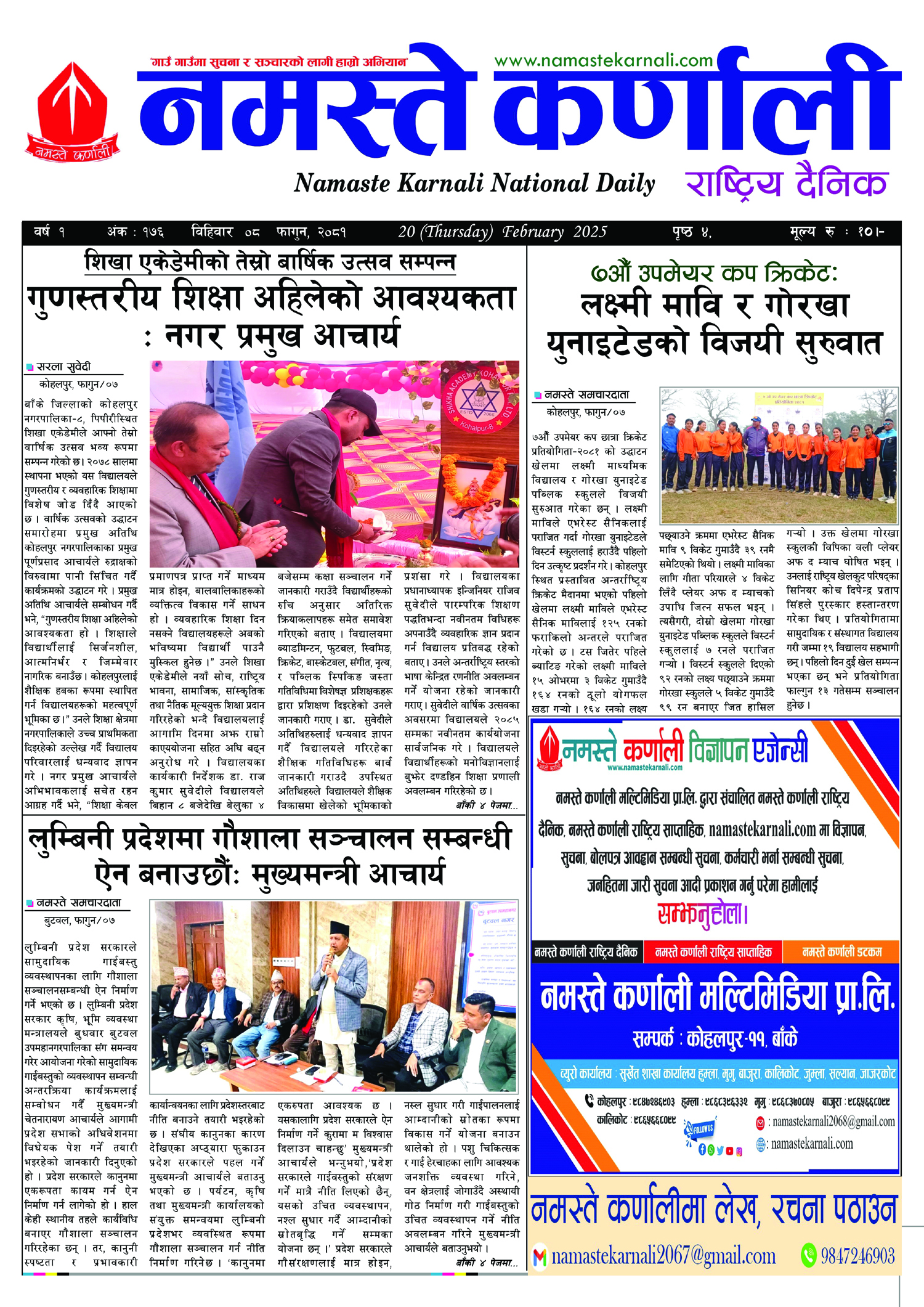 नमस्ते कर्णाली राष्ट्रिय दैनिक २०८१–११–२० गते